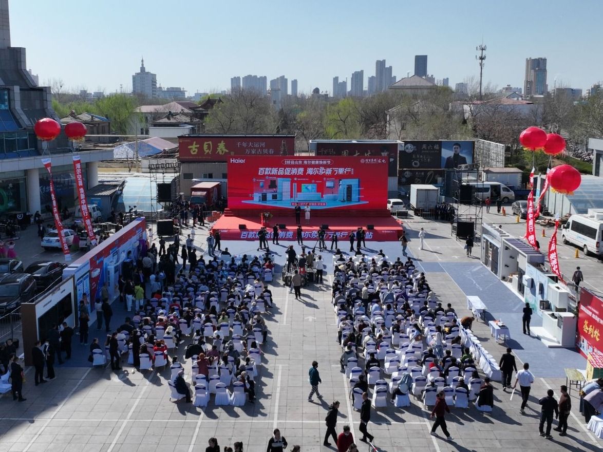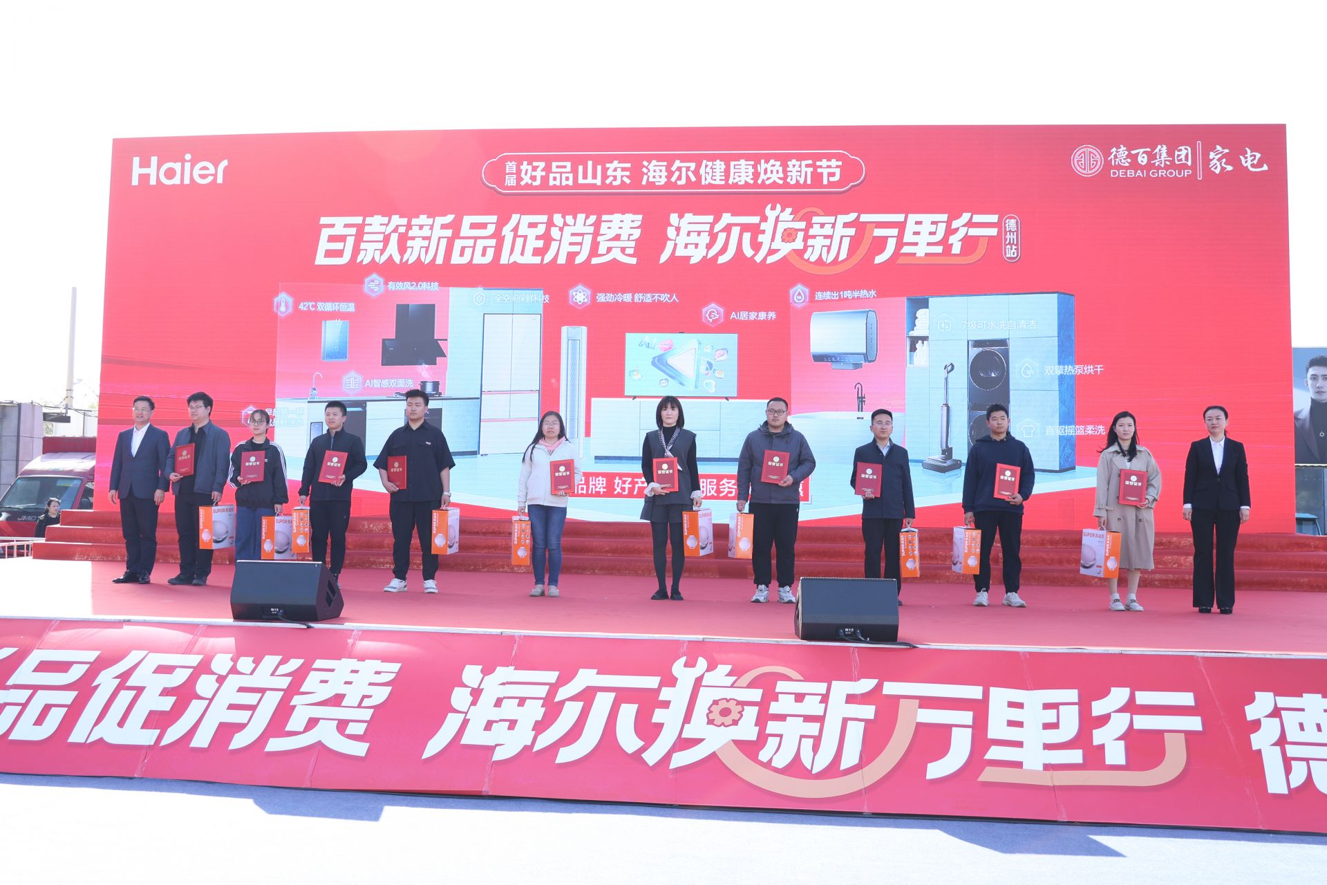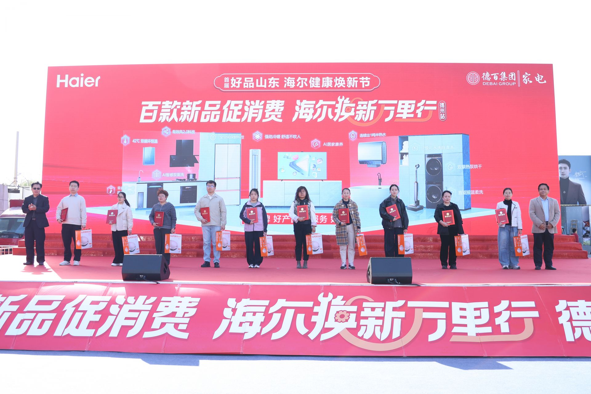 3月22日,“百款新品促消费 海尔焕新万里行——德州站”活动在德百大楼北广场举行。
