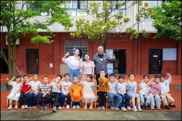 张雨绮、姜超与贵州凤冈土溪镇官坝幼儿园师生合影