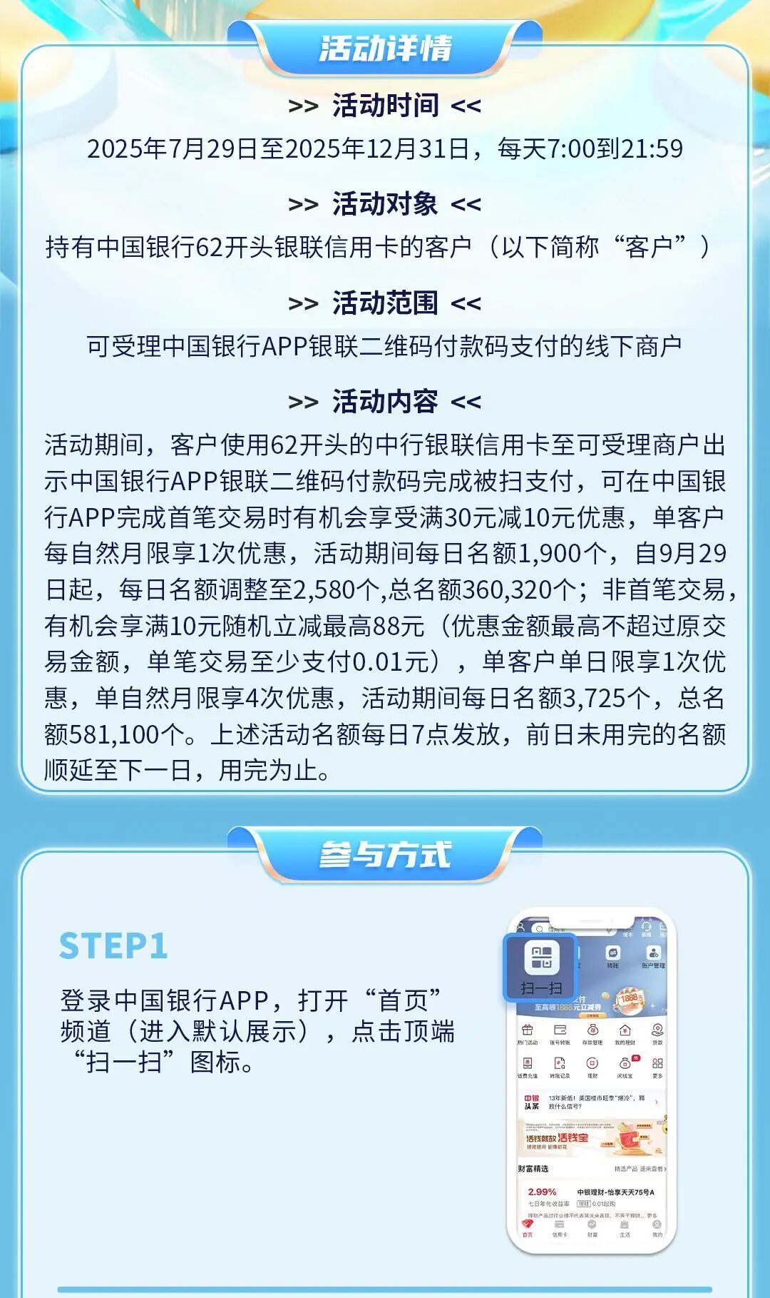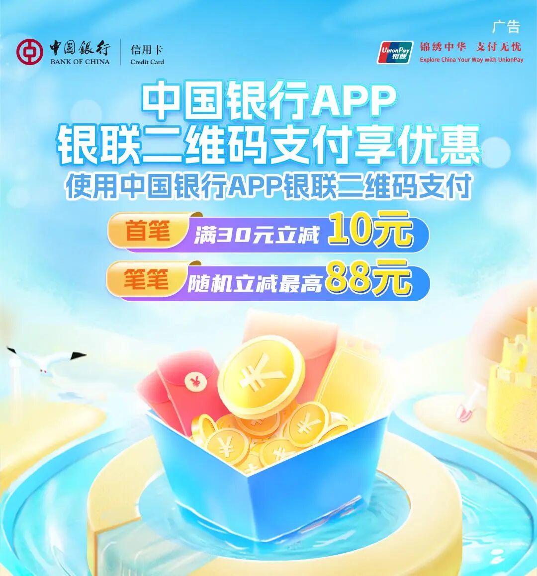 立减至高88元,中国银行APP支付优惠来啦!