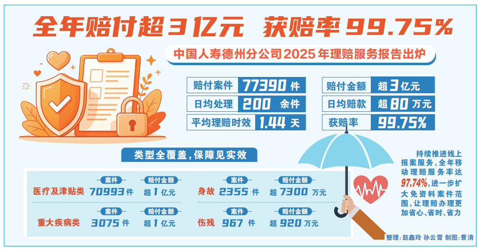 2025年,中国人寿德州分公司始终坚守“金融为民”的初心使命,以高效、便捷的理赔服务精准对接群众“病有所医、险有所托”的切实需求,持续为州城人民筑牢民生安全网,用实际行动践行国有保险企业的责任担当。