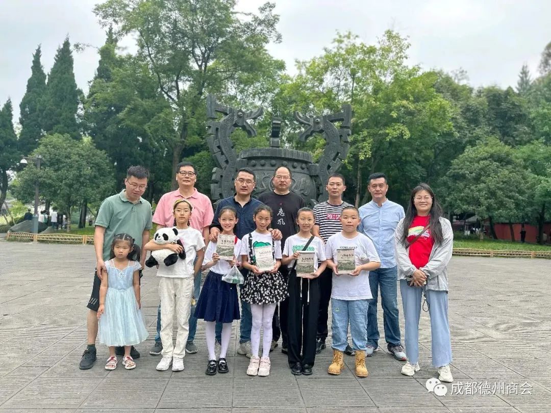游学结束之际,成都市书协副主席张雁,商会企业代表刘林、孙文辉、刘天栋、刘涛以及秘书长刘刚向每一位游学娃娃赠送了《中国历史故事》8册全集。