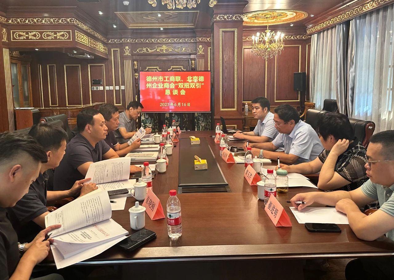 为认真贯彻落实德州市委、市政府关于深化融入京津冀协同发展工作部署,全力推进重大项目落地,6月16日,德州市委统战部副部长、市工商联党组书记赵金刚带队赴北京开展“双招双引”活动。市工商联党组成员、副主席黄玉芹,秘书长李华耿,齐河县工商联负责同志参加。