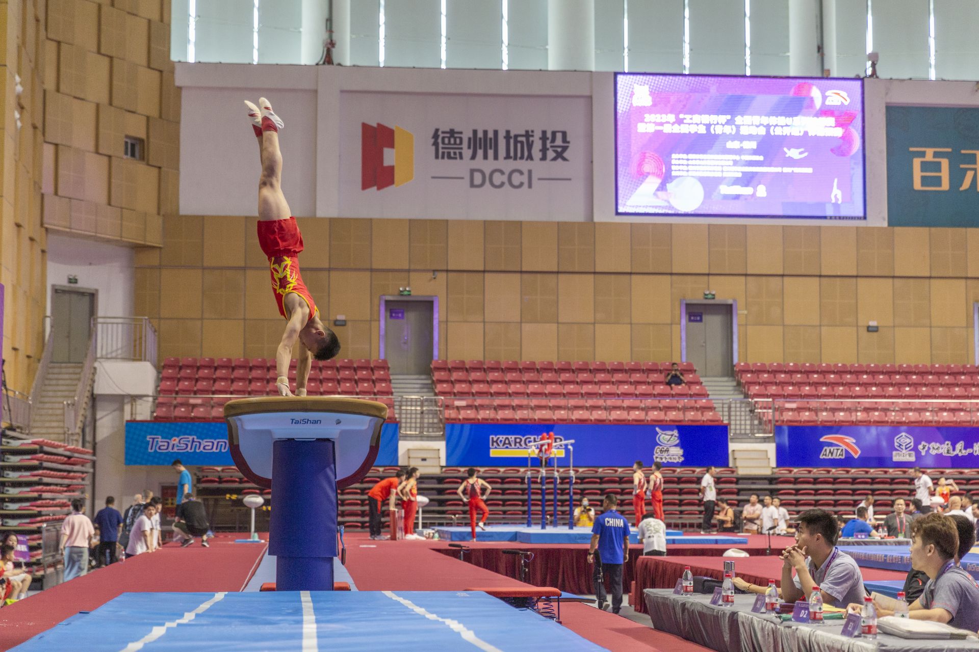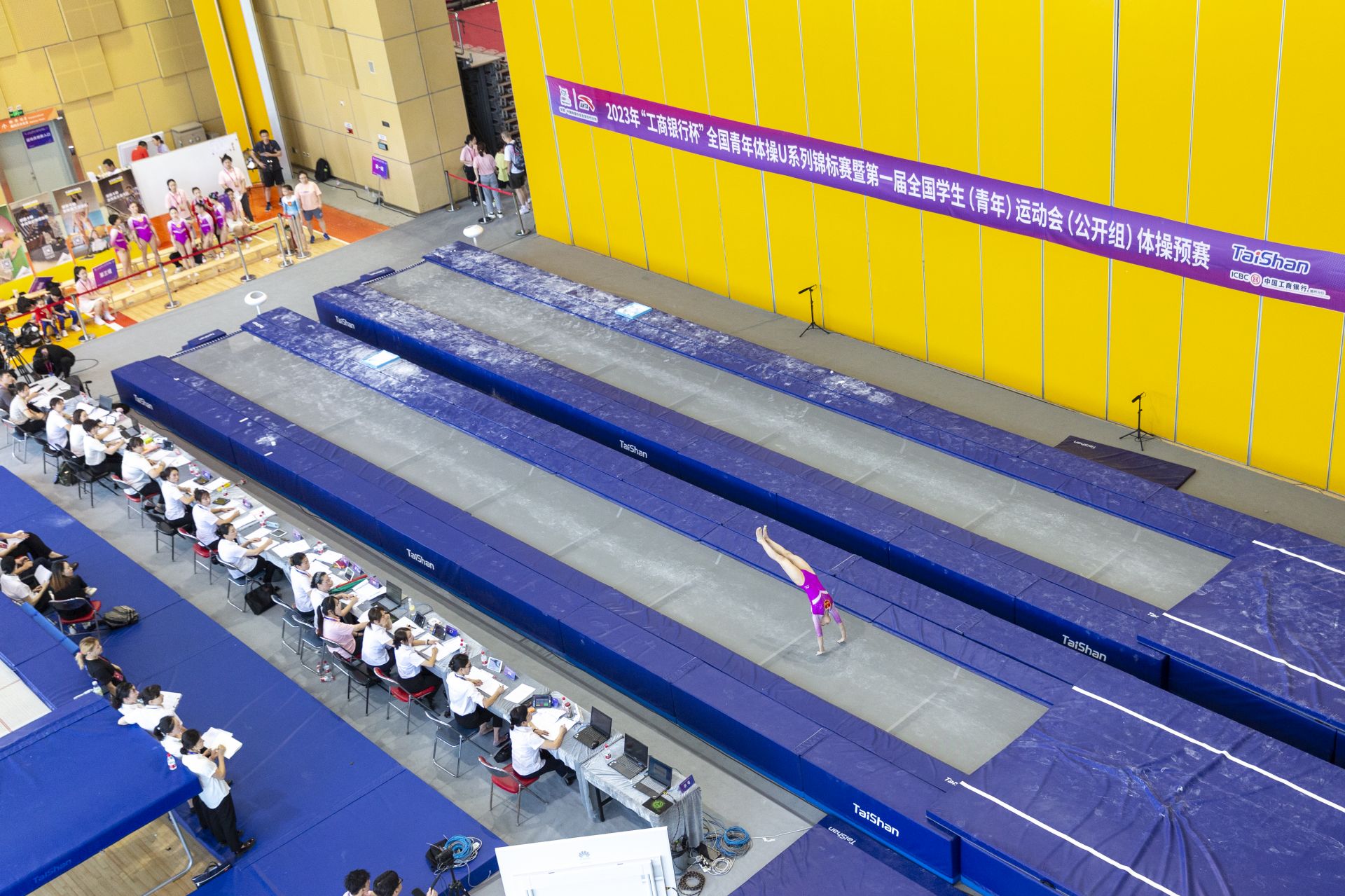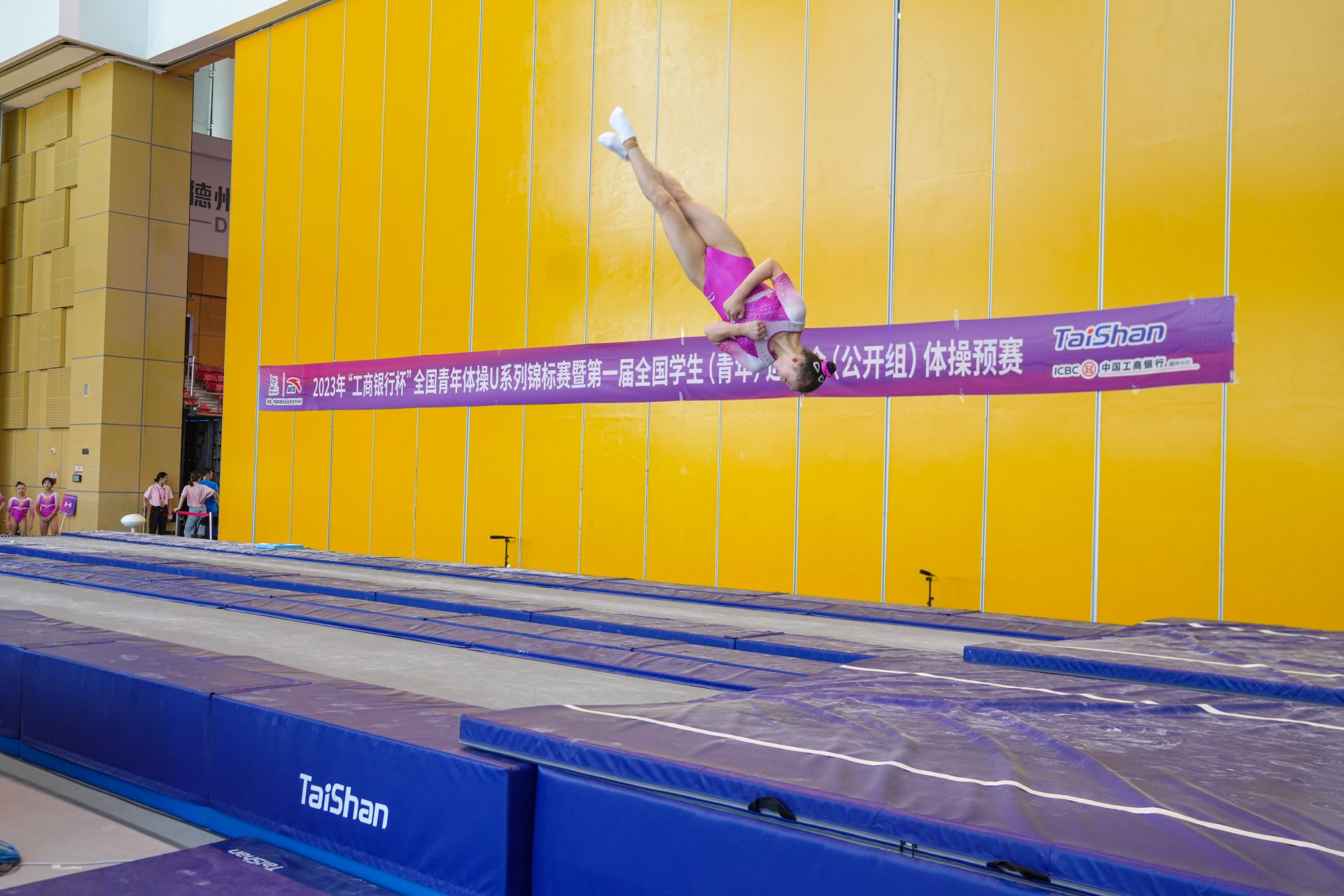 7月5日,2023年“工商银行杯”全国青年体操U系列锦标赛在德州市体育馆拉开帷幕。7月5日—12日,8天时间里,来自全国23个省市区的24支专业队500余名运动员将在团体赛、个人全能赛等竞赛项目中展开激烈角逐。比赛由国家体育总局体操运动管理中心、中国体操协会主办,山东泰山体育器材有限公司承办,德州市教育和体育局等单位协办。