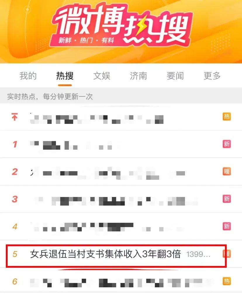 节目播出后,微博话题#女兵退伍当村支书集体收入3年翻3倍##山东省委书记揭秘乡村振兴经验##山东71位书记七一当天齐聚沂蒙山##女子种地5600亩国企老公辞职支持#等冲上热搜榜,总阅读量破1亿。