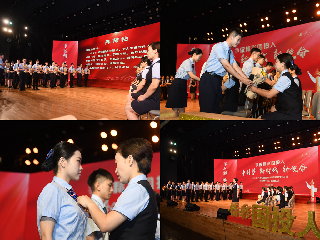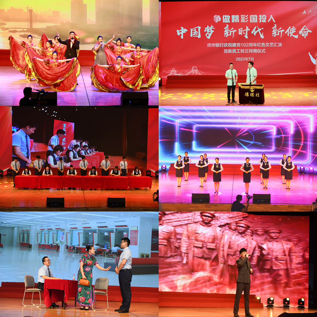 为热烈庆祝中国共产党成立102周年,深入贯彻落实党的二十大精神,推动学习贯彻习近平新时代中国特色社会主义思想主题教育走深走实,7月21日,德州银行举办“中国梦 新时代 新使命”红色文艺汇演暨新员工转正拜师仪式,展现新老员工风采,激扬青春奋进力量,营造争做精彩国投人的热烈氛围。德州银行党委书记、董事长牛洪春,党委副书记、行长赵鸣翠,党委副书记、监事长王伟芳等行领导及新老员工代表200余人参加活动。