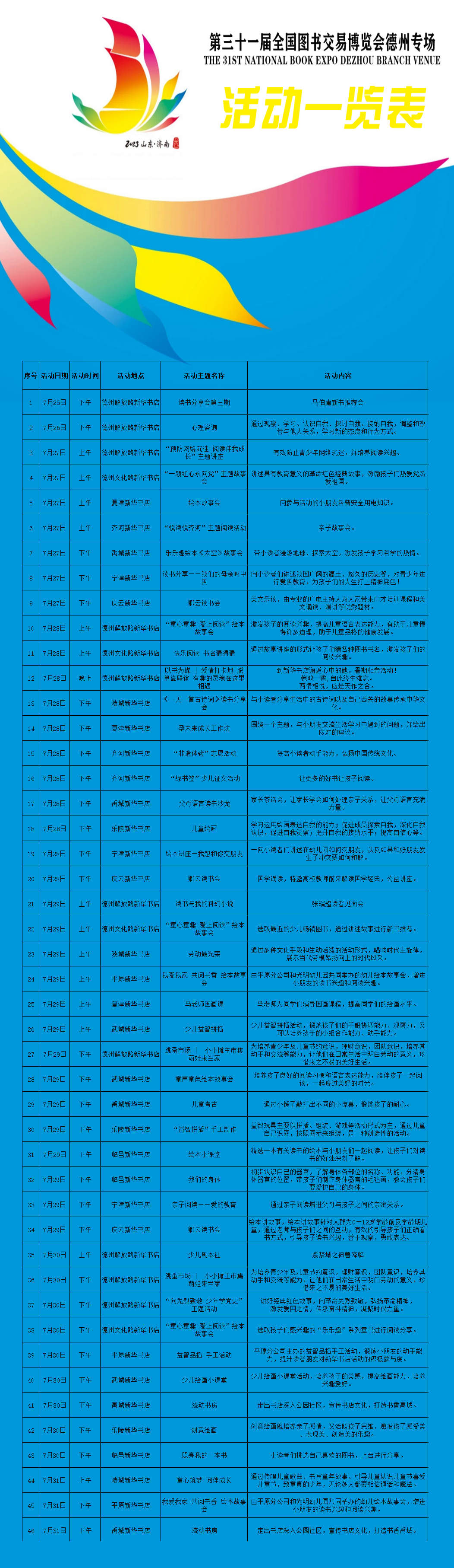 7月24日,第31届全国图书交易博览会德州专场活动在德州新华书店正式启动,将持续至8月13日,全市各县(市、区)新华书店同时开展系列活动。