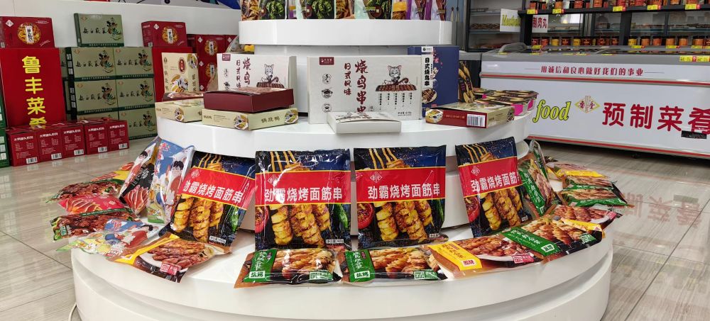 山东鲁丰集团展厅里展示的预制菜产品。新华社记者 陈国峰 摄