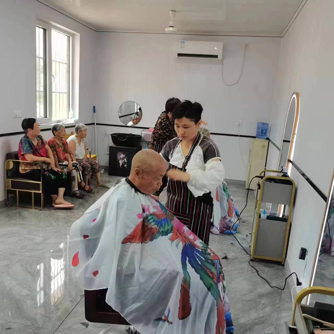 8月8日,宋家镇高牛村经过一个月时间筹建的“爱心发屋”正式营业了,一大早,发屋前就聚满了人,老人们有说有笑地排队等候理发师为自己解决“头”等大事。