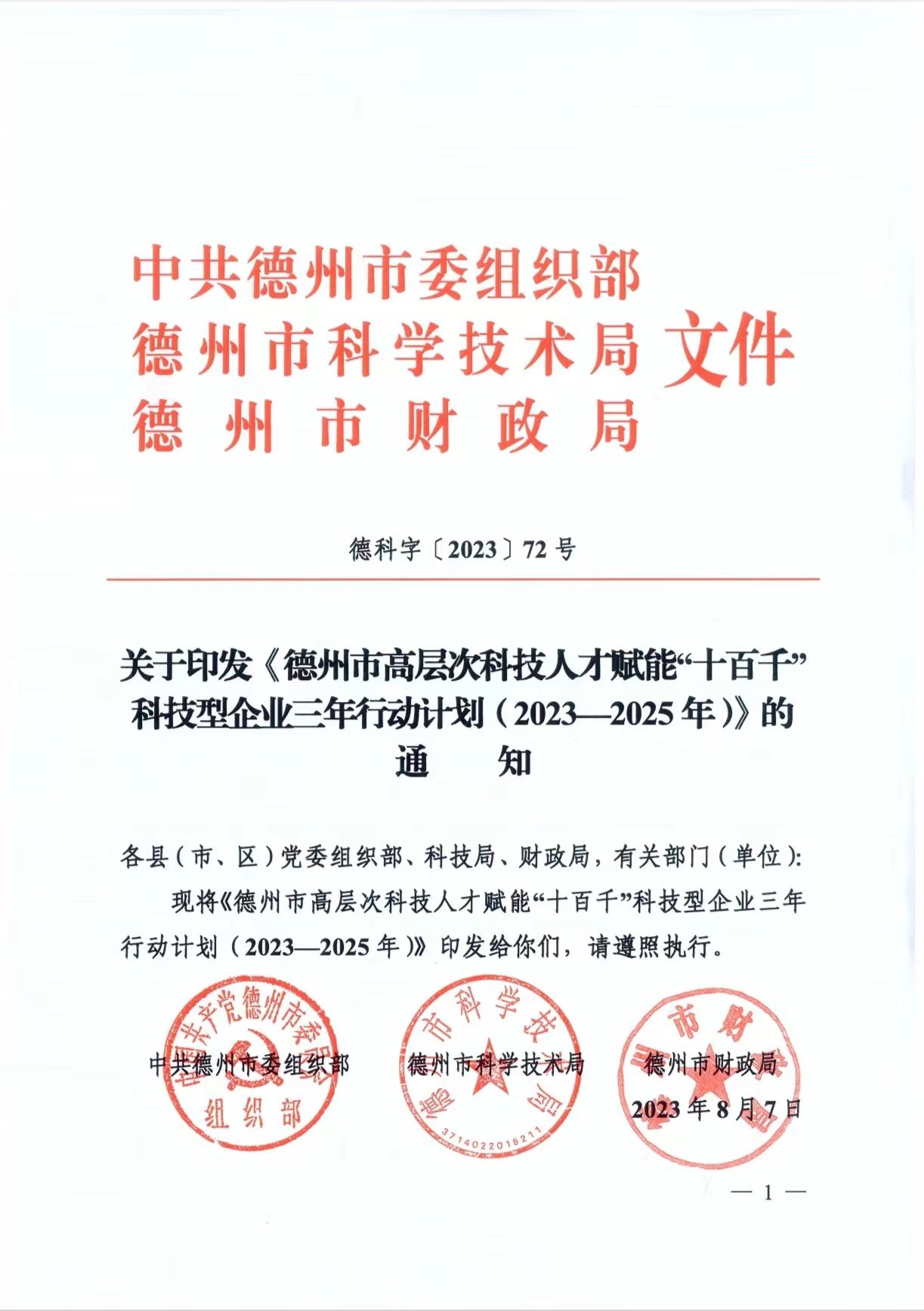 为加快建设国家创新型城市,大力实施创新驱动战略、人才强市战略,近日,市科技局联合市委组织部、市财政局出台《德州市高层次科技人才赋能“十百千”科技型企业三年行动计划(2023—2025年)》,计划利用3年时间,从全国高校院所中引进一批高层次人才组建科技服务团,到我市10家科技领军企业、100家高新技术标杆企业、1000家科技型中小企业担任科技副总、科技特派员和科技顾问等职务,帮助企业凝练技术需求、开展科技攻关、组织协同创新、促进科技成果转移转化。