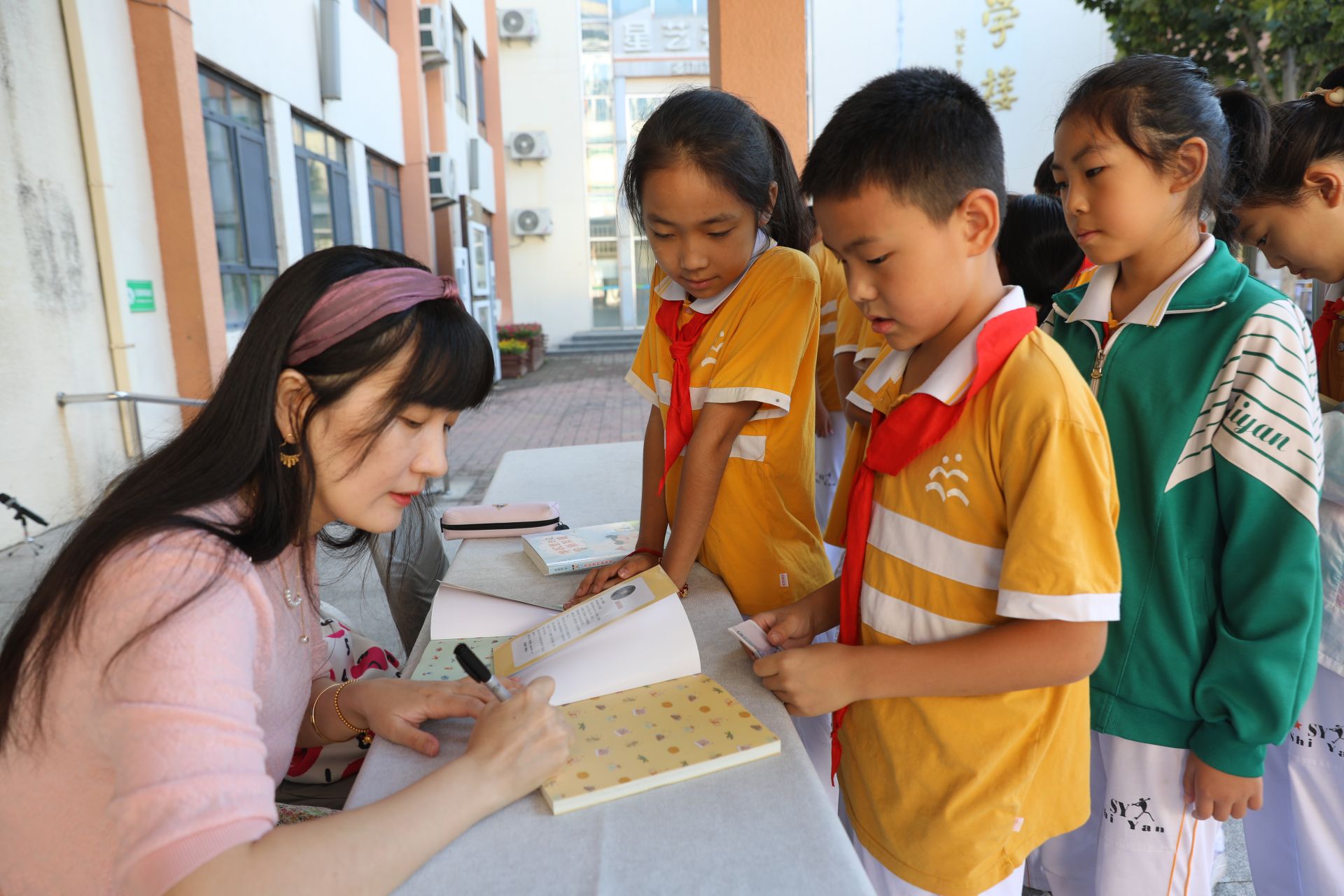 作家庞婕蕾介绍了自己写作的心路历程和心得感悟。报告会上,同学们不时被庞老师的风趣语言所打动,庞老师告诉孩子们如何从阅读中获取养分,如何从日常生活中提取写作素材等。讲座结束后,庞老师给现场的小书迷签名留念。