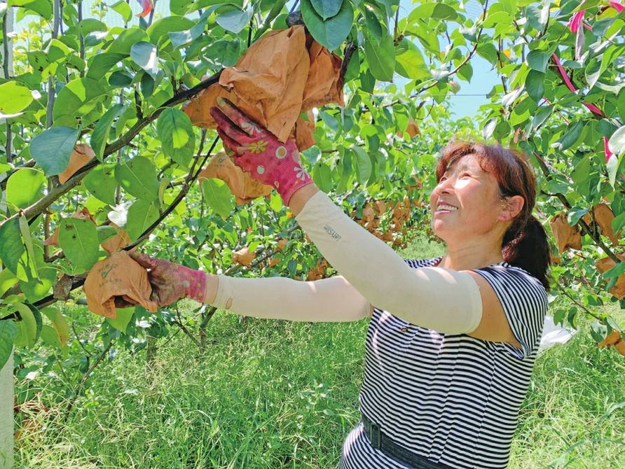 丰收的九月,理合务镇林寨联村的110亩皇尊蜜梨已经进入收获期,一个个金灿灿的梨果挂满枝头。这是理合务镇合硕“生态绿”产业联合体负责的一个项目。该项目依托林寨联村党支部领办的临邑润泽农业种植专业合作社进行管理,采取“六统一”模式,即统一购苗、统一种植、统一管理、统一采摘、统一包装、统一销售,保证了项目的标准化生产。项目区土地肥沃、排水良好,非常适宜梨树生长。同时,林寨联村坚持无公害种植,采用最生态的种植管理方式,通过给梨果套袋等方法,保证果体完整、果皮光洁。为方便梨果的保鲜储存,该项目配套建设的1000立方米高标准气调库已投入使用。“今年是坐果的第3年,预计亩产在2500公斤左右,可为村集体增收30万元以上。村民每天来这里务工,一天能收入80块钱,既富了村集体,又富了老百姓。”林寨联村党支部书记林宗棠说。