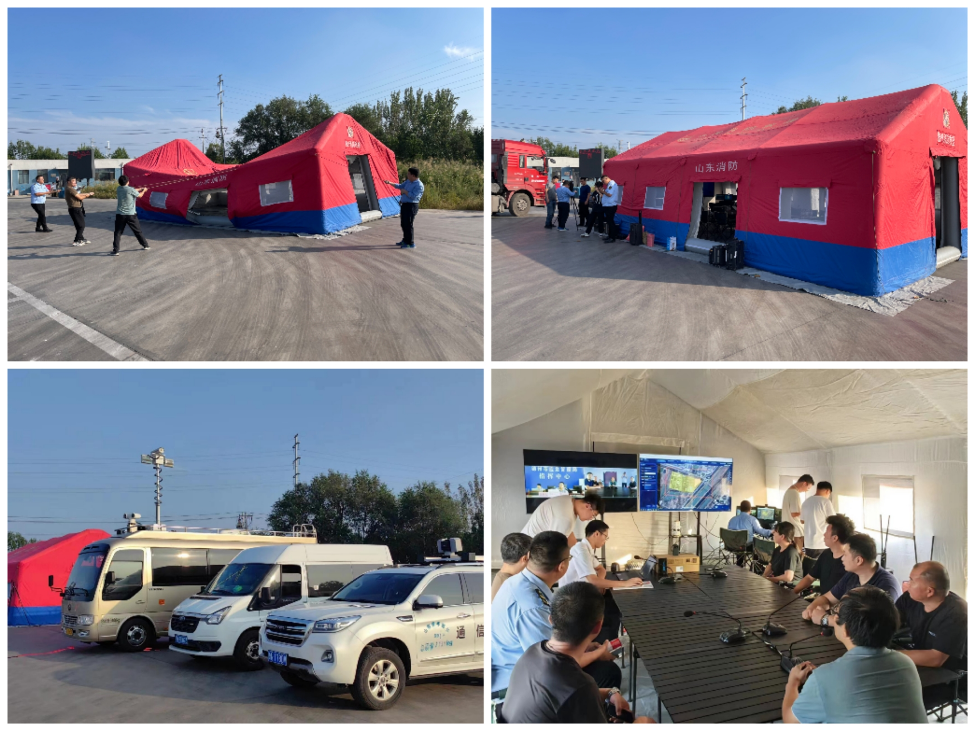 图为现场指挥部搭建和视频通信画面