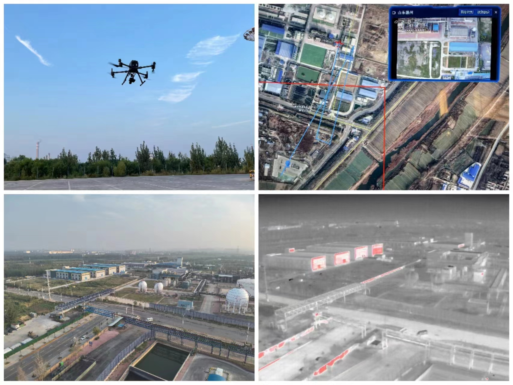 此次活动模拟德州实华化工有限公司液氯储罐出现泄露,在实华化工东停车场搭建现场指挥部,开展视频通信、现场感知、红外探测、画面回传、三维建模等科目,为救援指挥提供支撑保障,全方位演练“空天地”一体化应急通信保障体系。