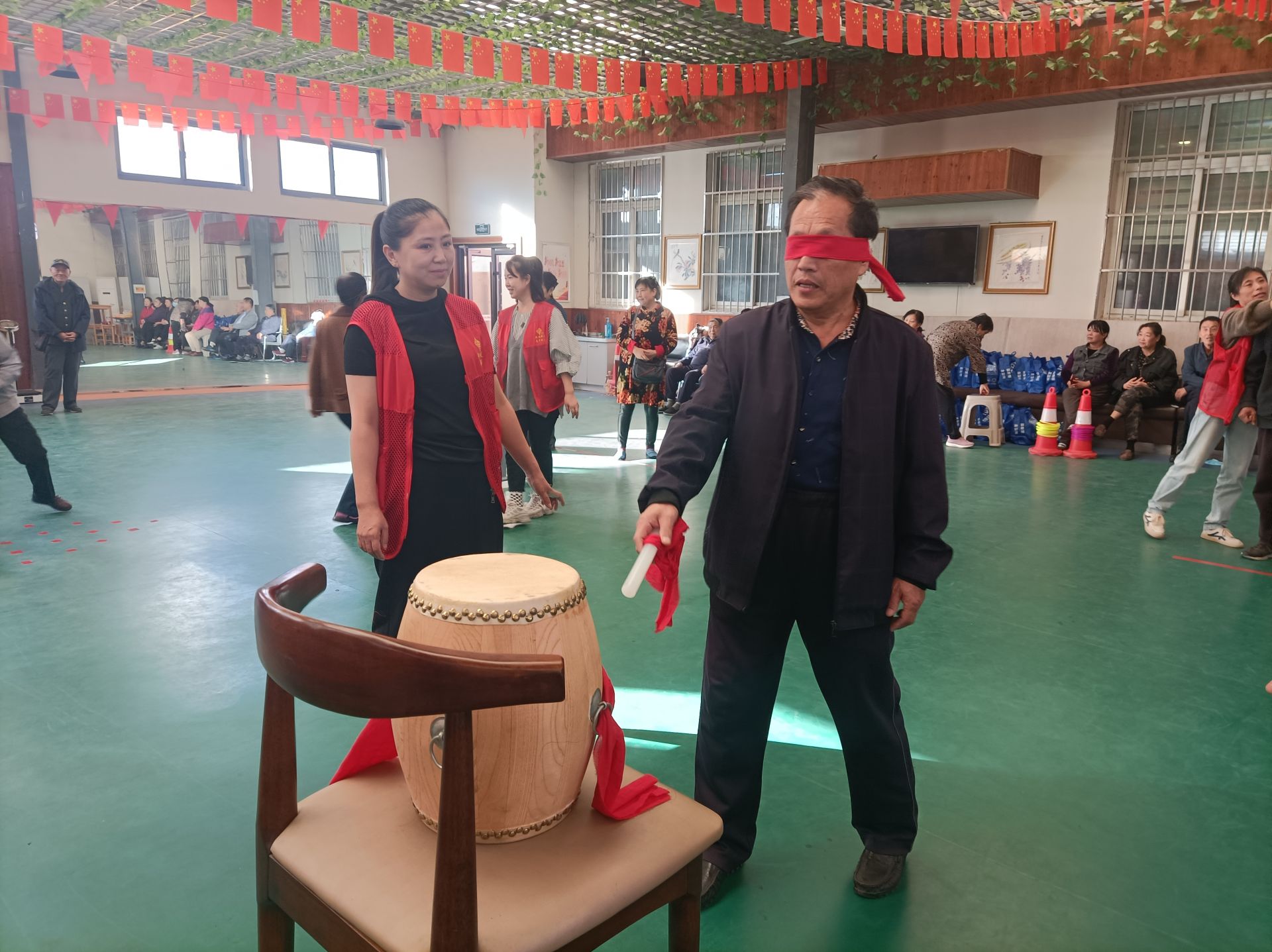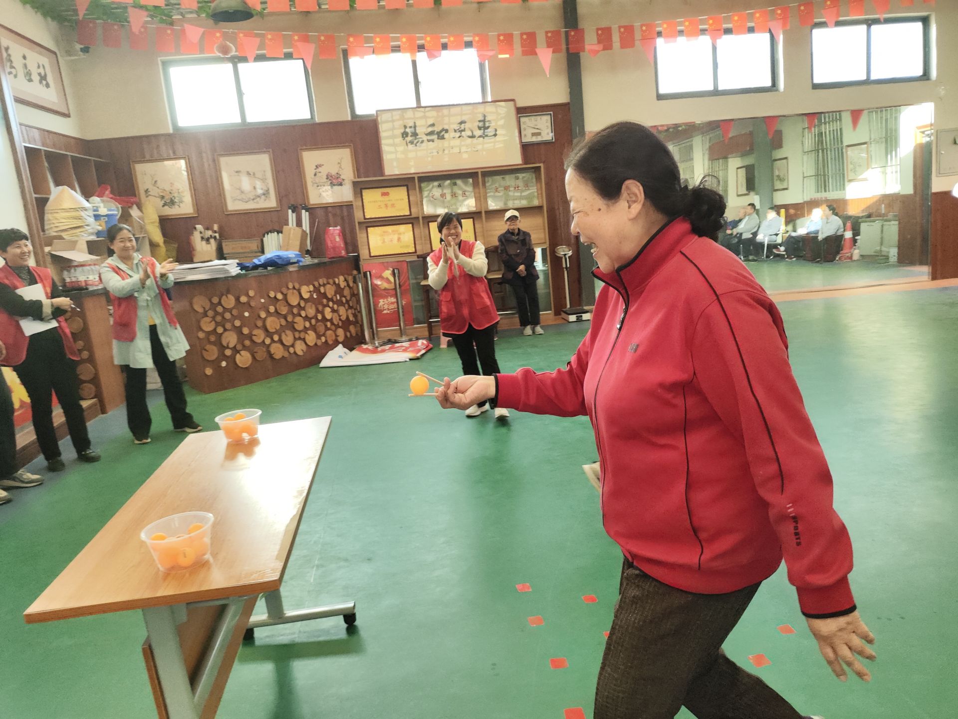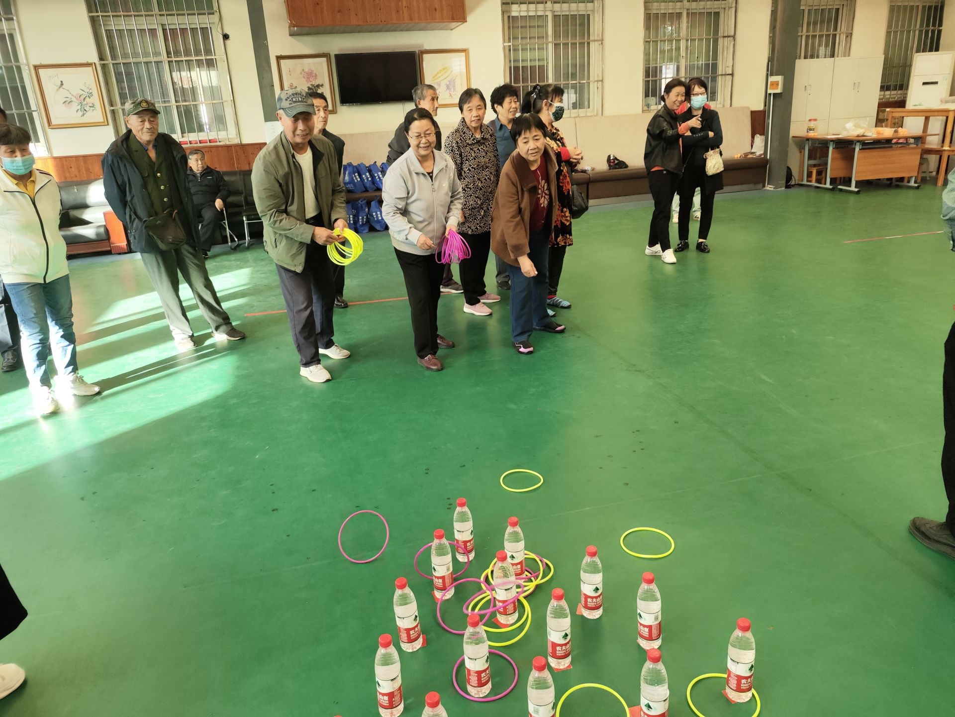活动开展了趣味套圈、卷报纸、趣味保龄球、盲人击鼓、花样乒乓球、香蕉新投喂等项目。
