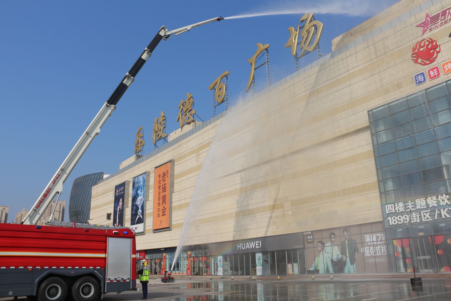 此次演练由德州市安委会主办,乐陵市安委会承办,乐陵市应急管理局、乐陵市消防救援大队、乐陵德百广场等单位协办,设置救援队伍集结、火灾人员疏散,救援联动等六个演练科目。演练模拟乐陵德百广场因线路老化、打火,引燃二楼一服装区,并引燃商场内其他服装商铺,火势和高温烟气迅速蔓延。接到指令后参演单位和人员各司其职、各负其责、密切联动,顺利完成了既定任务。检验和锻炼了全市城市综合体建筑火灾应急救援的技能和水平,强化了政府、部门和企业之间的协调联动机制,达到了预期的效果和目标。