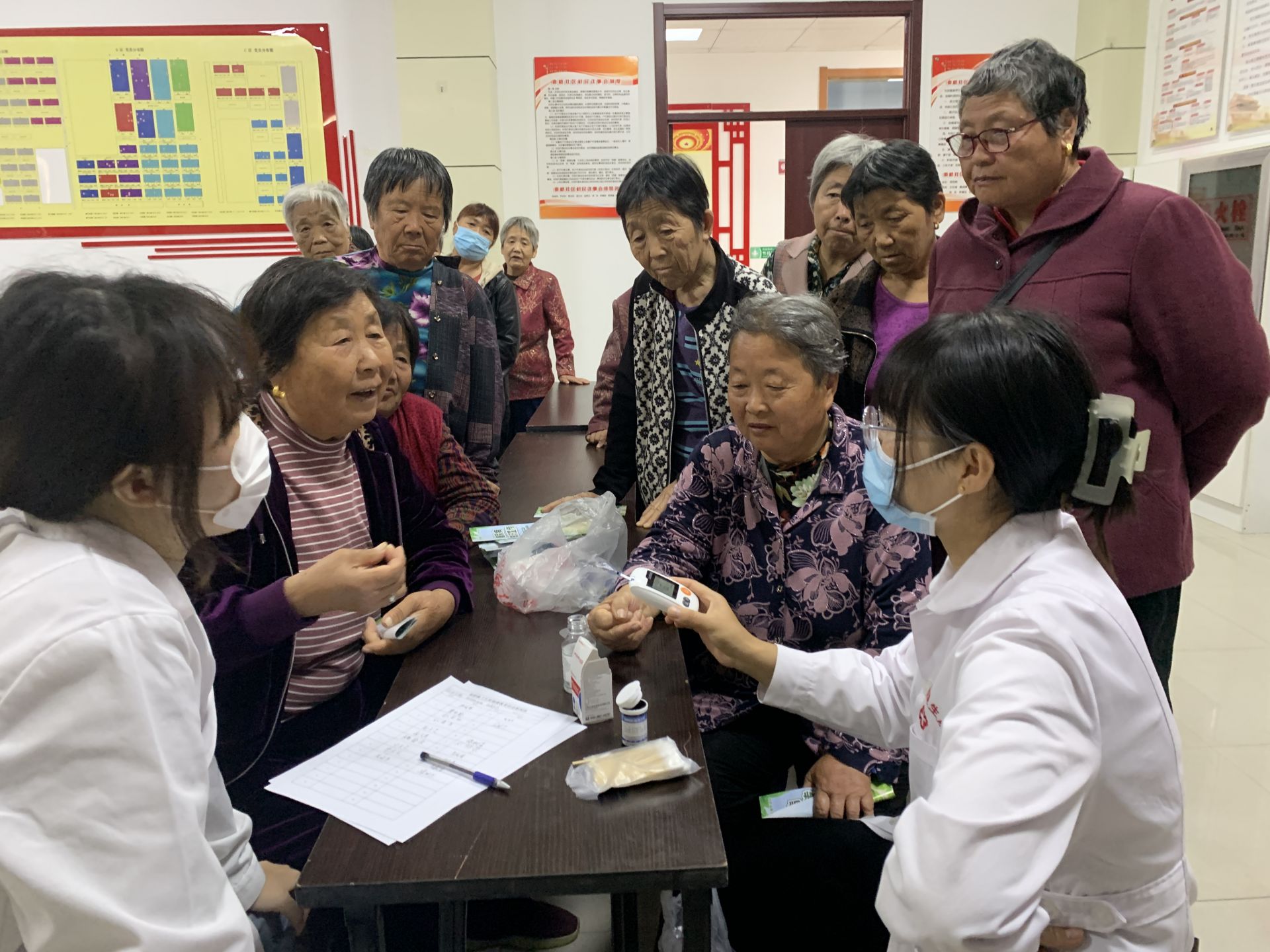 本次活动中,袁桥镇卫生院医生以“三高”为切入点,通过互动提问的方式引导大家培养健康的饮食习惯,用通俗易懂的语言讲解经络的基本概念及中医的六种体质分类,并针对每种体质的特征向大家推荐不同的穴位保健方法。最后,医生为现场居民测量餐后血糖,针对血糖结果再次提醒社区居民日常生活中应做到正确控糖。