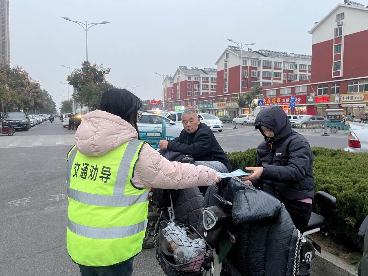 11月24日,德州天衢新区袁桥镇袁桥社区开展“从‘头’做好,道路安全伴你我”主题活动,推动“一盔一带”行动落实到位。