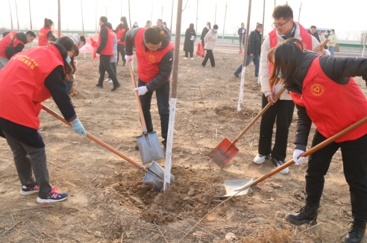 青年干部首先到禹城市房寺镇开展了“每人能种三棵树 一个单位一片林”义务植树活动。尽管初冬时节寒意袭人,但植树现场却忙得热火朝天,30多名青年干部热情高涨,干劲十足,大家三两一组、分工协作,挥锹铲土、栽树浇水,配合十分默契。通过此次植树活动,不仅提高了青年干部保护生态环境的意识,也形成了“人人参与植绿护绿,同创共建绿水青山”的浓厚氛围。