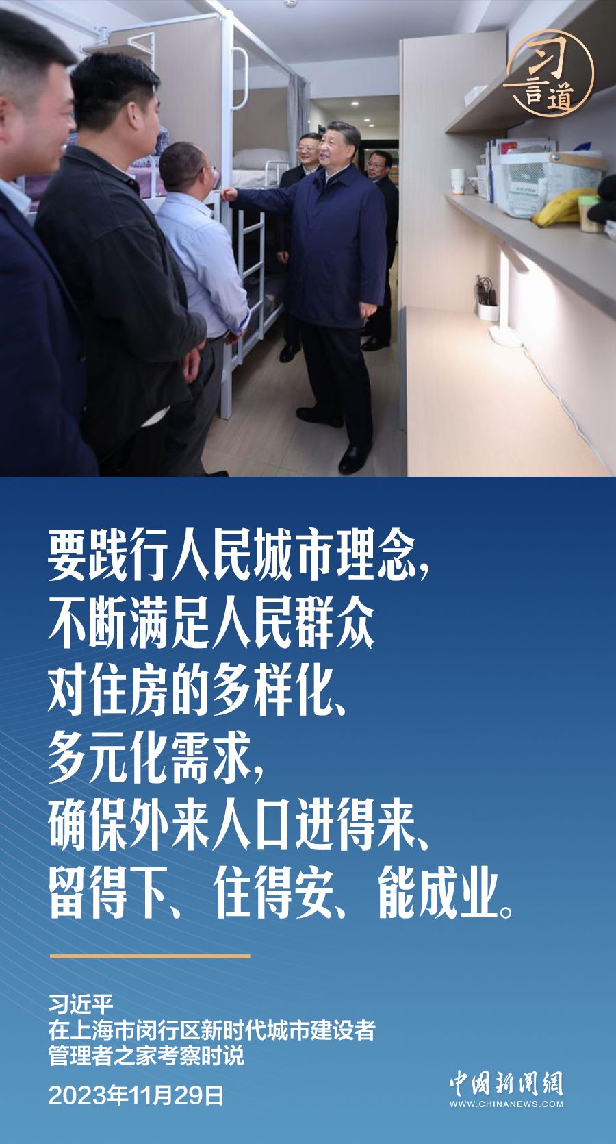 让人民群众住有所居、居有所安,一直是习近平总书记的牵挂。11月29日,习近平考察上海市闵行区新时代城市建设者管理者之家。