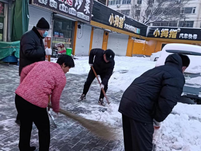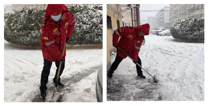 12月15日早,辛庄社区“以雪为令”,迅速行动,组织社区工作人员、志愿者清除路面积雪。退役军人志愿者孟祥超积极加入扫雪队伍,参加志愿扫雪活动,帮助居民清扫门前积雪,方便居民安全出行。