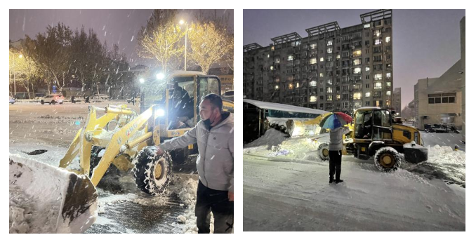 益德社区党员志愿者、退役军人许宝智,退伍不褪色,积极响应党委政府除雪号召,自费联系铲车为道路除雪。许宝智顶着寒风和大雪指挥铲车将主次干道的冰雪全部铲除干净,为社区居民清理出了一条“平安路”、“暖心路”。