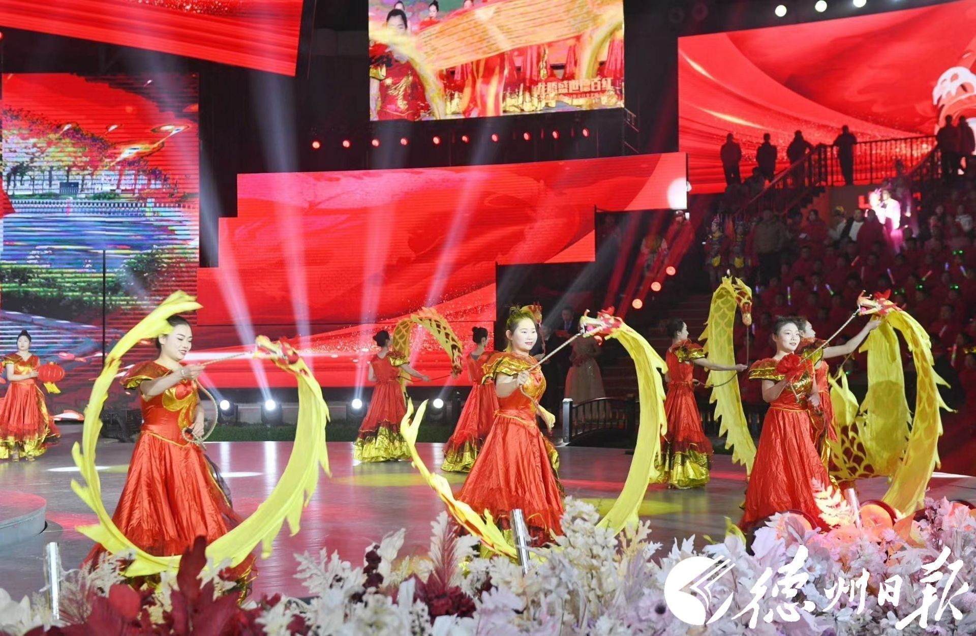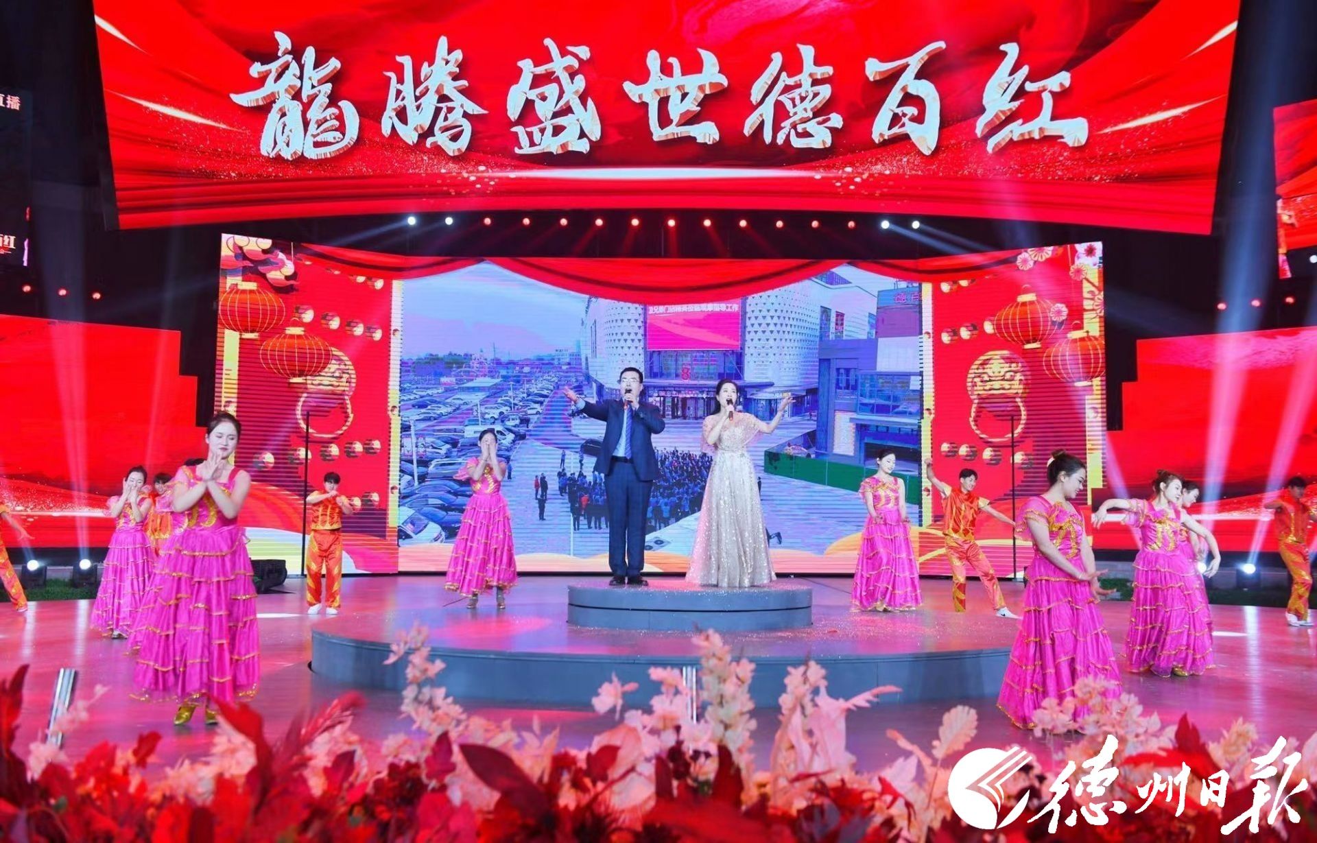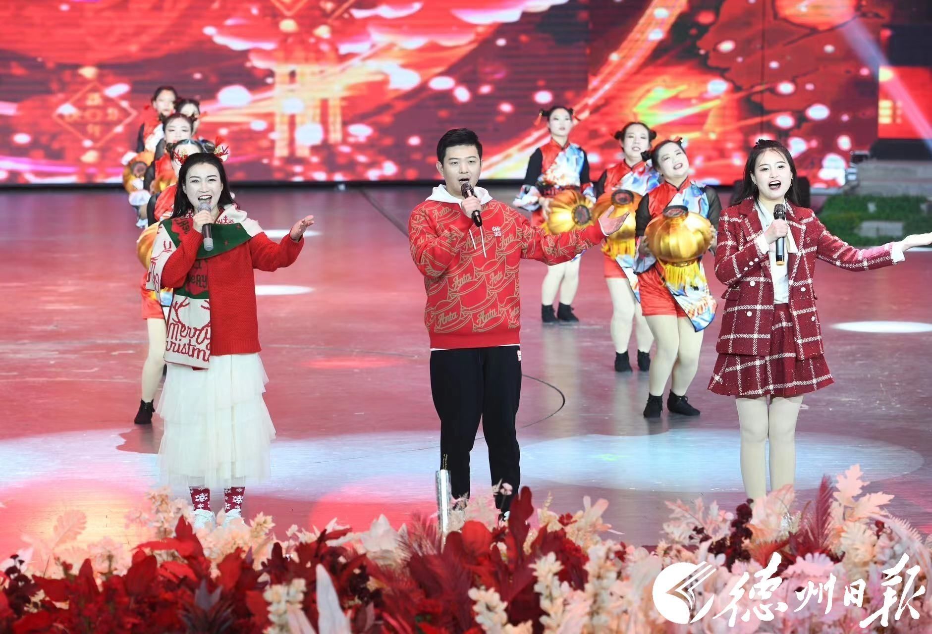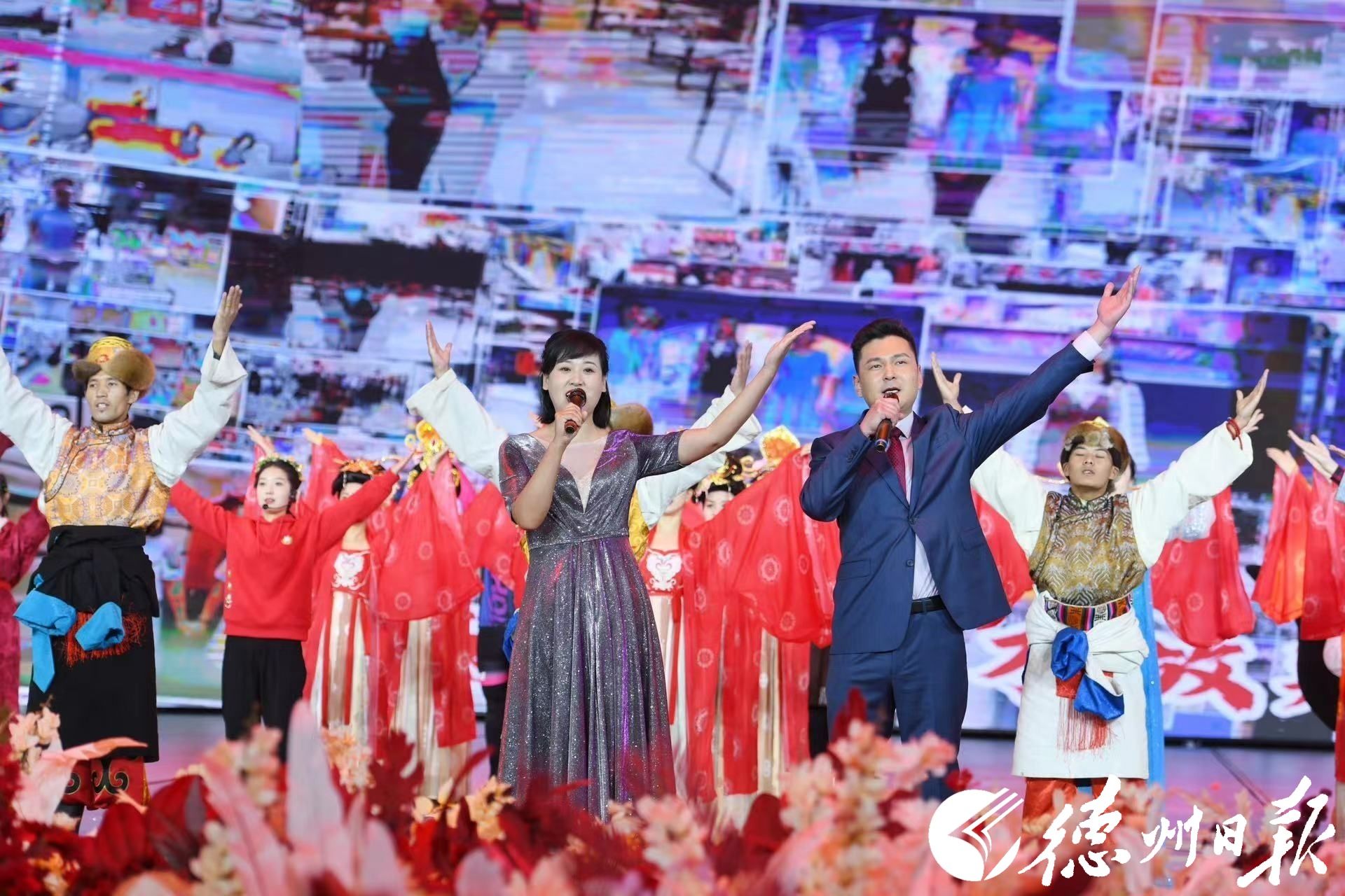 “一声布谷啼,春风十万里,故道椹果香,运河杨柳绿,这方才落子, 那边又布棋,创新勇发展,四十风雨砺……”来自齐河德百广场的梅春贺、王素素等表演的二重唱《迈步开新局》,坚定的词句、深情的旋律感染着现场每一个人,直戳心底、扣人心弦。