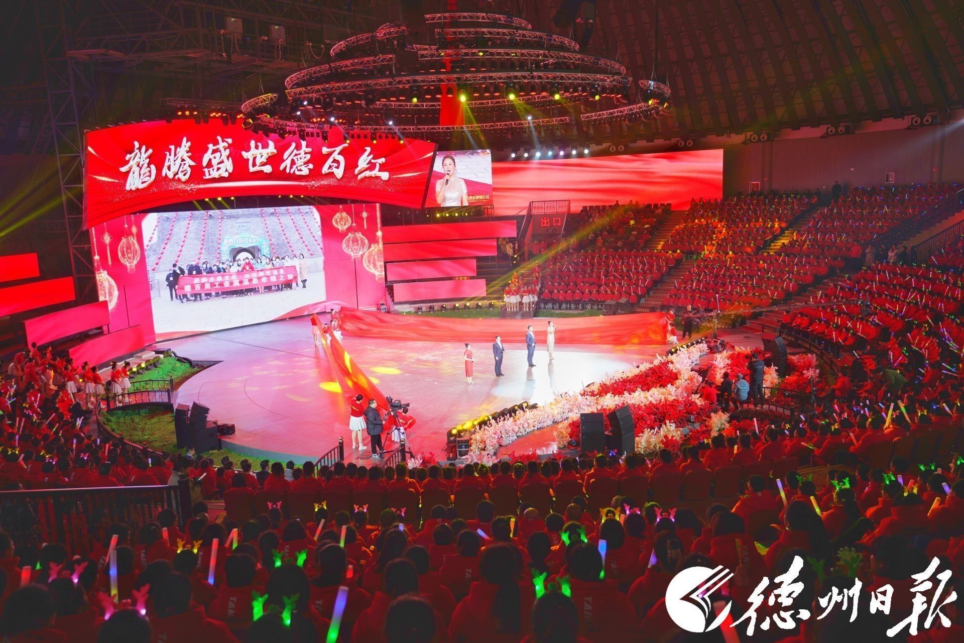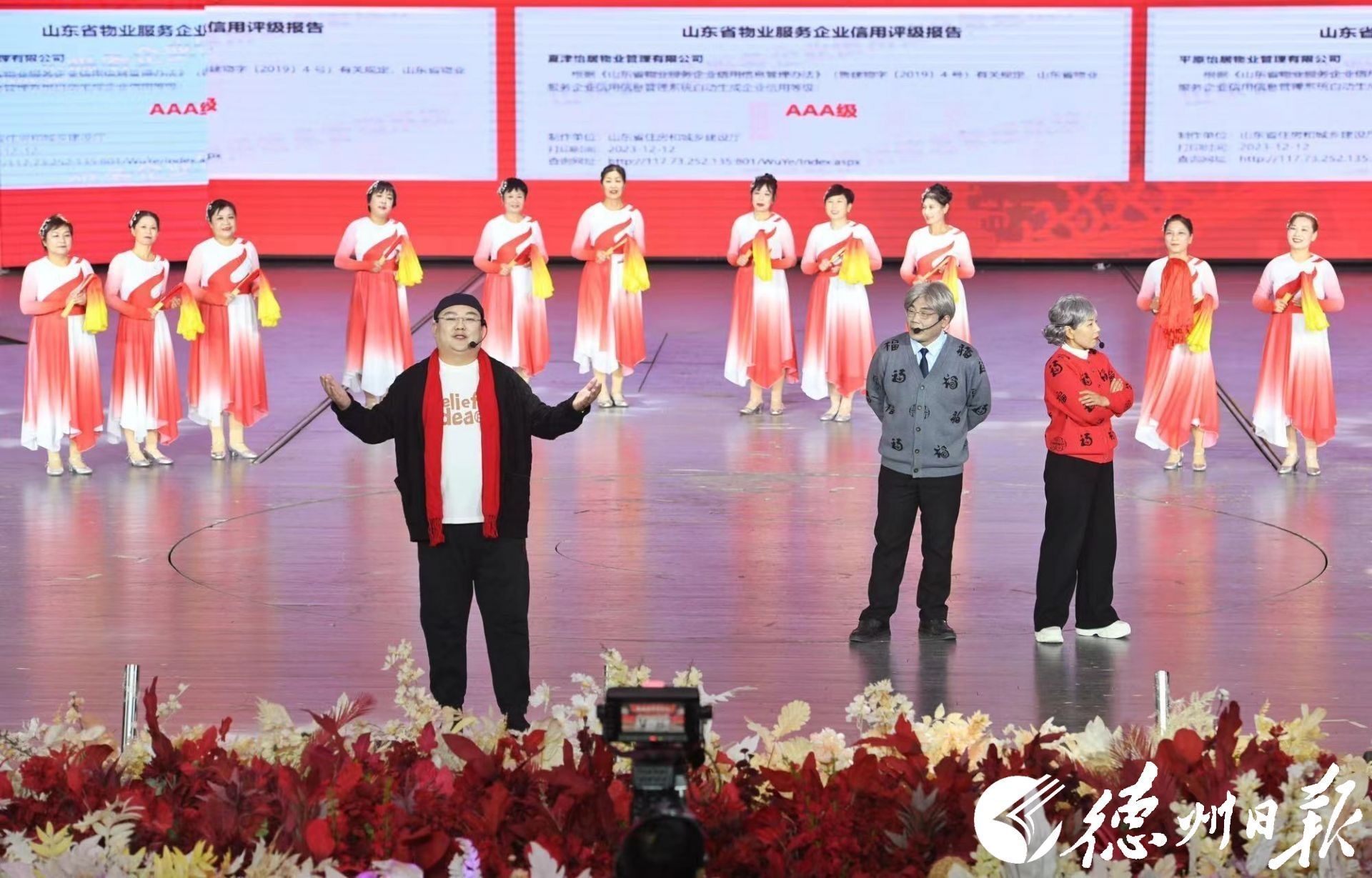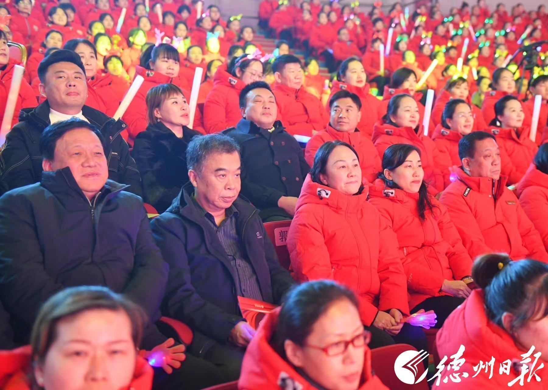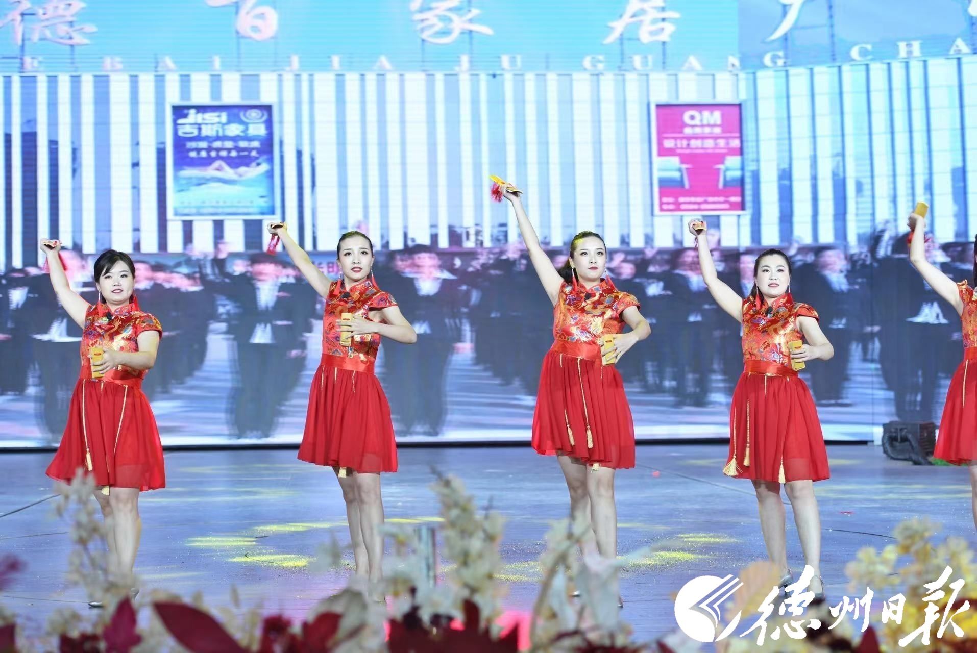 “一声布谷啼,春风十万里,故道椹果香,运河杨柳绿,这方才落子, 那边又布棋,创新勇发展,四十风雨砺……”来自齐河德百广场的梅春贺、王素素等表演的二重唱《迈步开新局》,坚定的词句、深情的旋律感染着现场每一个人,直戳心底、扣人心弦。