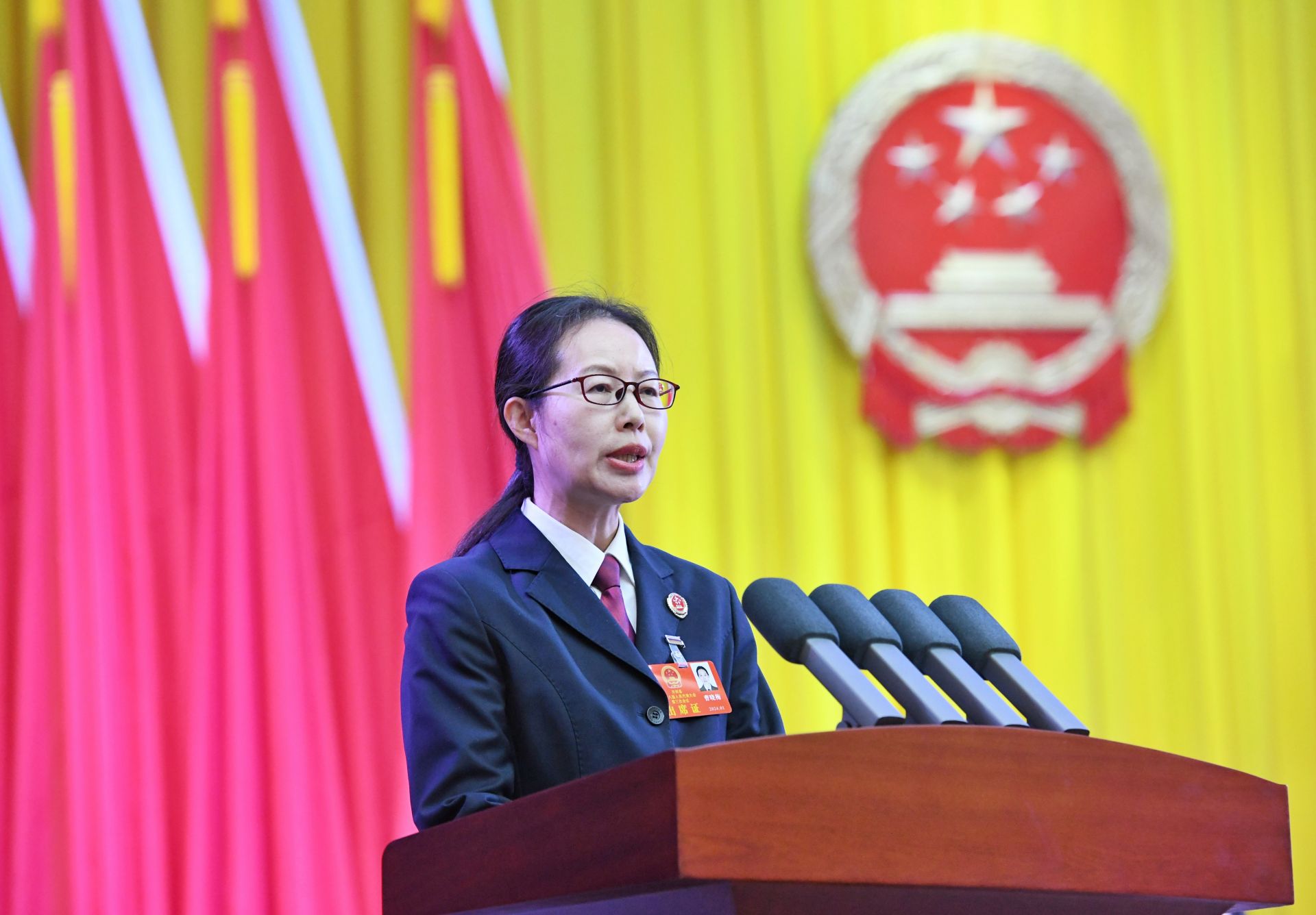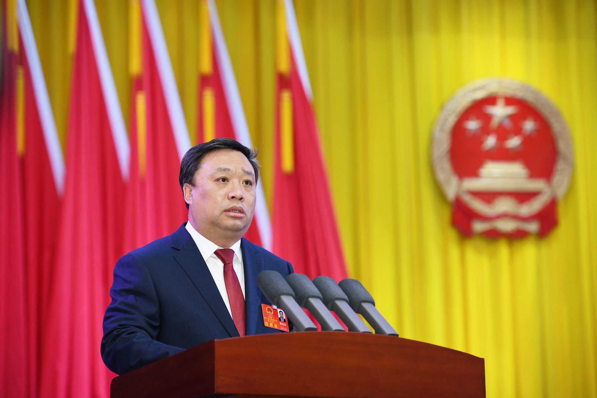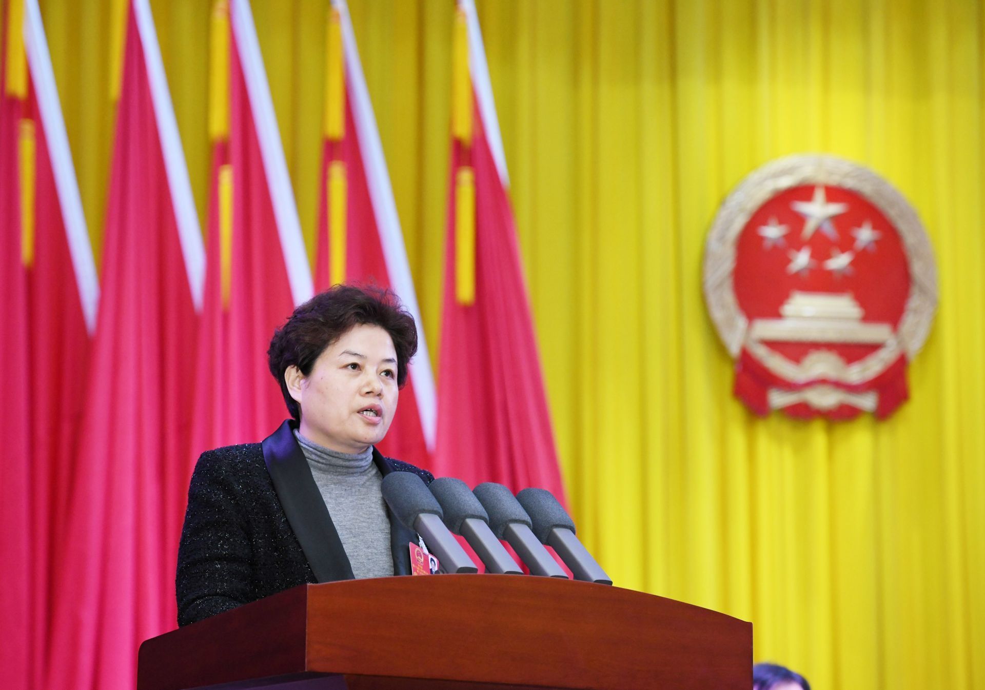 齐河县人大常委会主任李彬彬作人大常委会工作报告。