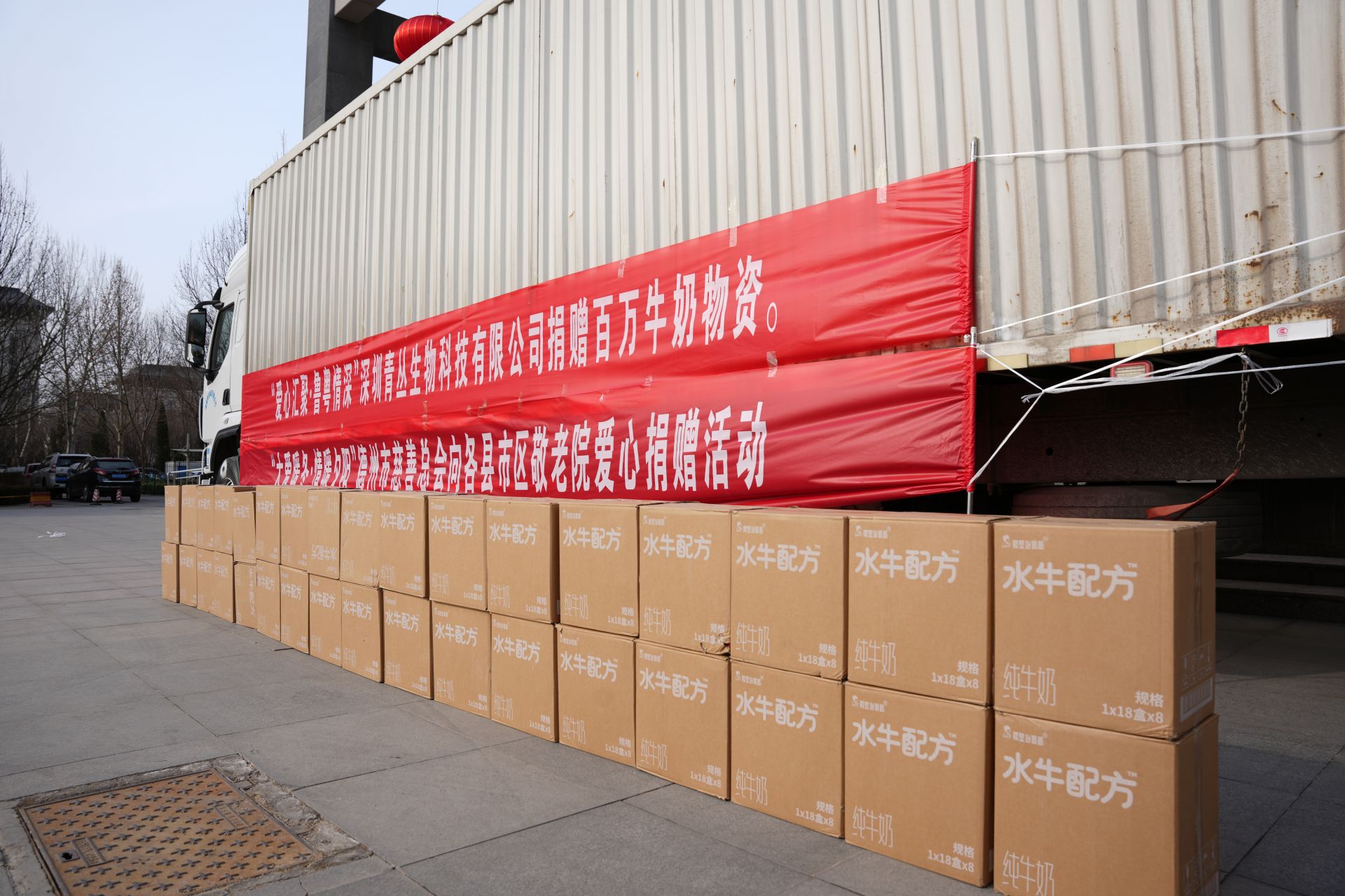 2月1日,“爱心汇聚·鲁粤情深”爱心牛奶捐赠仪式在德州市民政事业园举办。捐赠仪式现场,深圳青丛生物科技有限公司为德州市慈善总会捐赠了价值135万元的“隔壁刘奶奶”品牌爱心牛奶。
