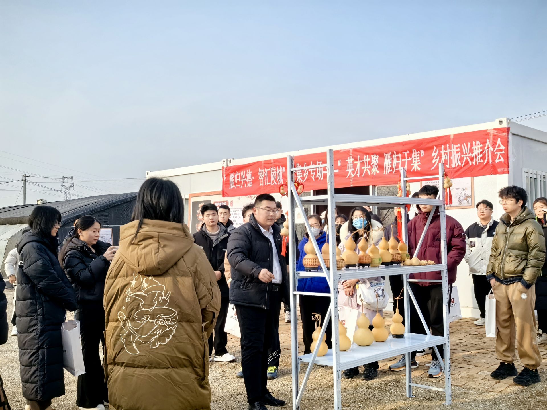 “大家现在看到的就是用中号白皮葫芦雕刻完的工艺品,这是机雕产品,雕刻师手里拿着的是咱强村公司德州绿胜农业产业发展有限公司重点打造的精雕葫芦工艺品。依托强村公司,去年我们成立了葫芦工艺品雕刻“共富工坊”,通过“采摘劳动+技能培训”的联动循环模式,实现周边闲散劳动力就近就地就业30余人,群众人均增收1500余元。今年我们还开通了“念念有于”淘宝、抖音网店,打通葫芦产品的线上线下双销售渠道。大家可以观赏一下这些工艺品,都非常精美!”乡村振兴推介会上,于集乡乡村振兴服务中心主任吴凯为在外人才们介绍着葫芦“种加销”项目取得的成绩。