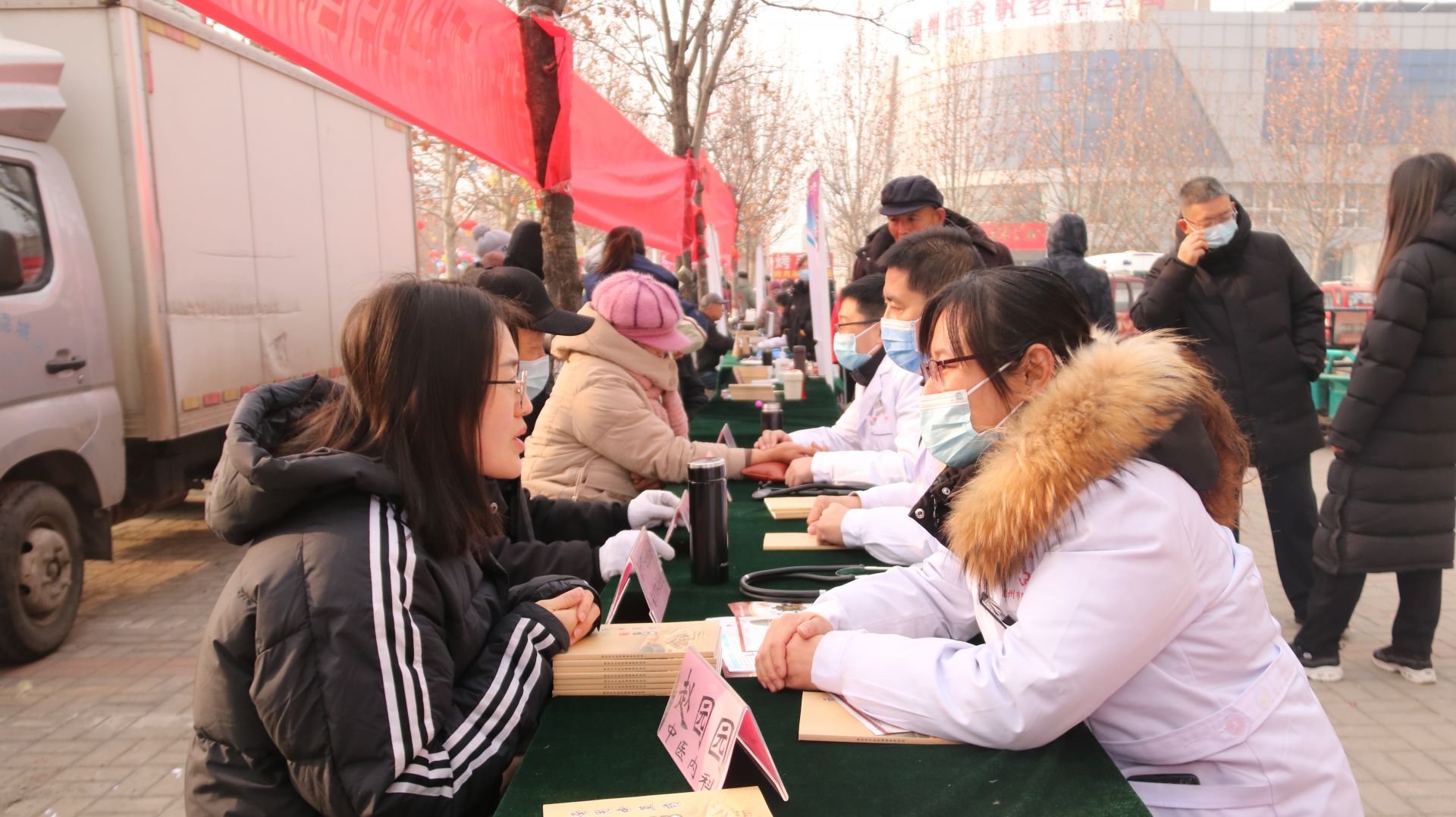 前来赶集的村民络绎不绝,其中不仅有德州本地的居民,还有闻讯而来的河北景县等地的群众。中医专家通过对群众的舌苔、脉象进行辨识,为群众在生活起居、情志调理等方面提供意见与指导,并解答群众咨询的问题。