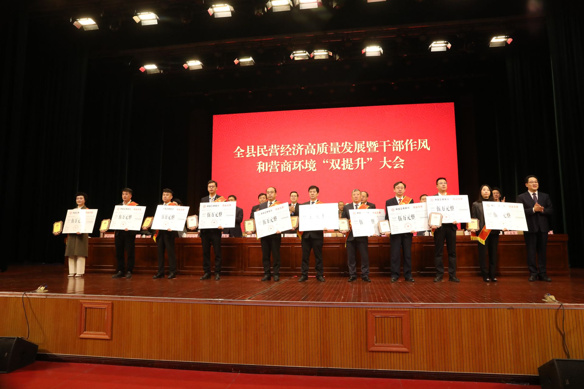 这场大会,既有真金白银、更有真情实意,一系列支持民营经济发展的“干货”让民营企业倍感温暖。3人荣获“2023年度突出贡献民营企业家”,16人获优秀民营企业家荣誉称号,并获现金奖励。54家企业获突出贡献民营企业,16家单位获服务民营经济发展突出贡献金融机构,55家单位获争取省级以上荣誉和“一把手”营商环境示范项目等荣誉称号。