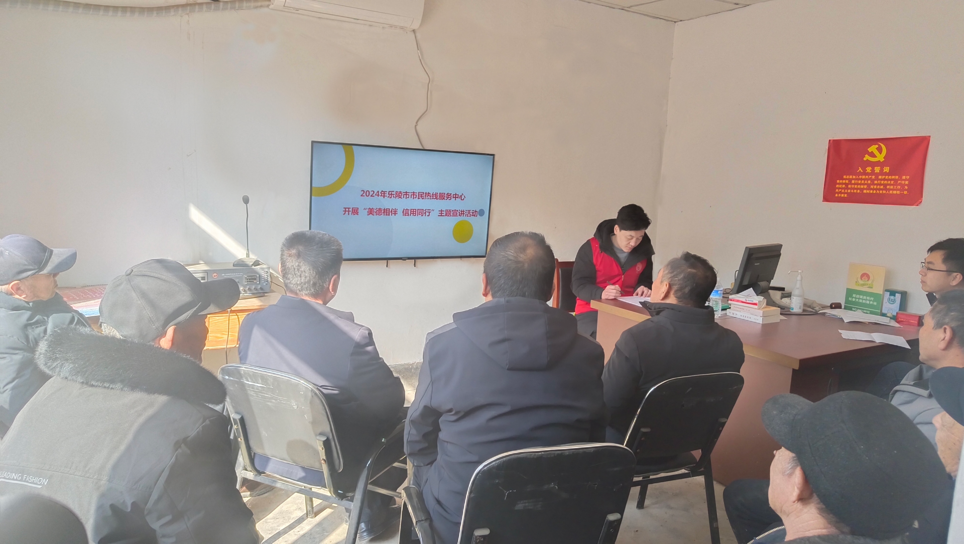 为进一步推进社会信用体系建设,弘扬诚信文化,营造诚实守信的良好社会氛围,2月27日,乐陵市市民热线服务中心到郑店镇前杨家村开展“美德相伴 信用同行”主题宣讲活动,弘扬中华民族传统美德和时代新风,倡导居民在生活中树立诚信意识,争做诚信好市民。