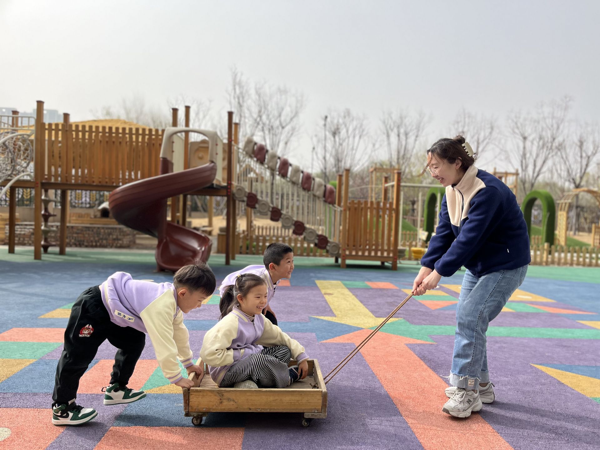 学生入园,没有居住、户口、划片限制,这样的底气源自齐河县不断建强的学前教育支撑体系。该县通过实施幼儿园三年建设攻坚计划,投资7.45亿元,新增优质公办学位6000余个。为高质量做好“省级游戏活动实验区”工作,县财政投资 6500 万元为新建幼儿园统一配备教学设备、玩教具和图书,同时设置专项经费,用于游戏场地改造、改善幼儿园室内外环境。强化师资队伍建设,近三年共招聘、回引备案制幼儿教师1449人。所有公办幼儿园“三教轮保”,师幼比达1:8,高于国家1:15标准。
