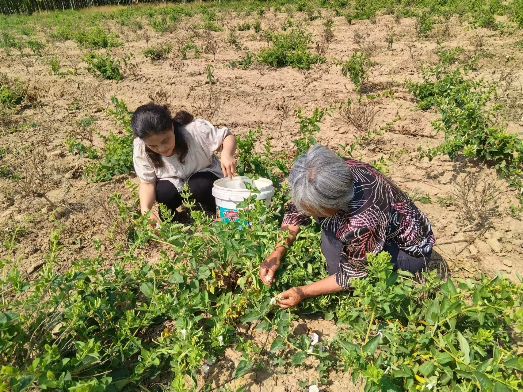 小满时节,是金银花开放的时候,宁津县崔杨村金银花生态养殖基地百亩金银花迎来盛花期,5月22日,德州市委党史研究院派驻宁津县崔杨村第一书记张燕来到该村金银花生态养殖基地,及时提醒村民采摘时的天气,叮嘱村民采摘时注意防晒和防中暑,并同村民一起采摘,同时及时了解金银花的收购价格,协助村两委和收购商谈价格,助力农户增收。
