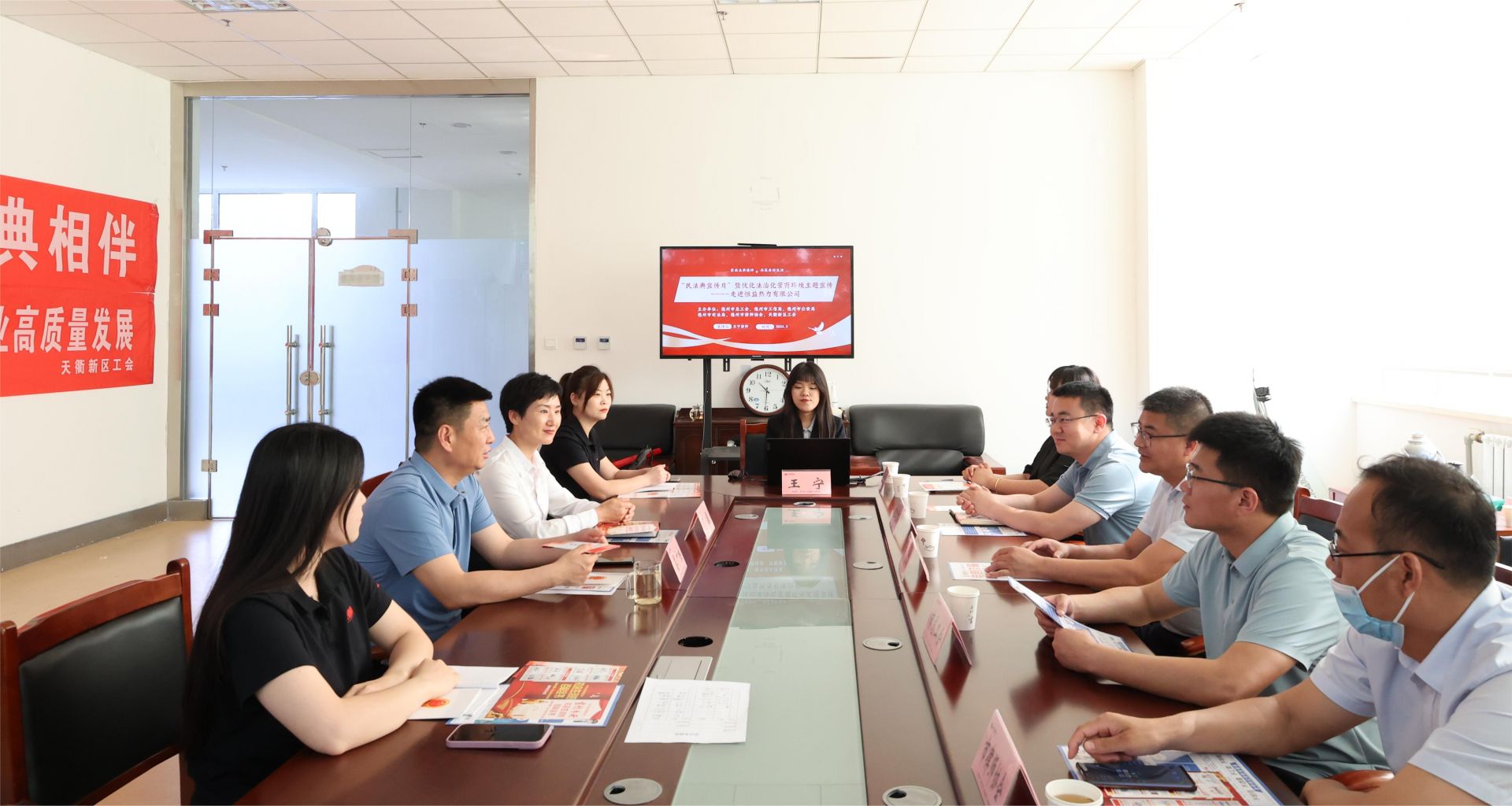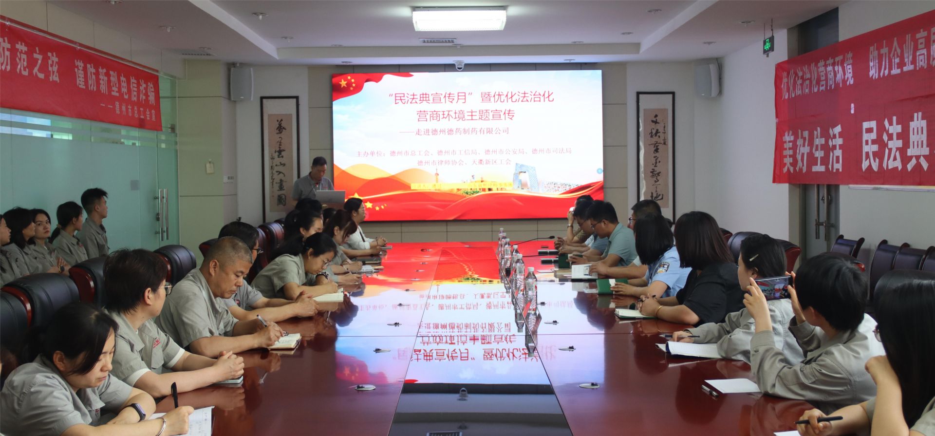 为聚焦优化法治化营商环境,针对经营主体和职工群众急难愁盼问题,持续深入开展民法典等相关法律法规普法宣传,5月23日,天衢新区工会联合德州市总工会、德州市工信局、德州市公安局、德州市司法局、德州市律师协会,走进德州德药制药有限公司、恒益热力有限公司为职工开展公益法律服务活动。