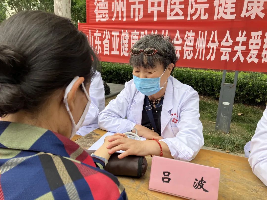 德州市中医院颐享门诊主任李洪英,针灸推拿科副主任刘丽丽,主任医师吕波,副主任医师王鑫、孙金玥等医护人员走进社区,为居民提供脉诊、测量血压血氧、健康咨询等服务。刘丽丽为前来参加活动的居民进行针灸、耳穴压豆等,并给出诊疗建议。吕波、王鑫、孙金玥为大家脉诊并讲解夏季常见病、多发病的预防和日常保健知识。李洪英向居民讲解营养配餐方法和养生保健知识,帮助居民及时掌握自己的健康情况,传播健康理念,让人们更加关注健康、重视健康。