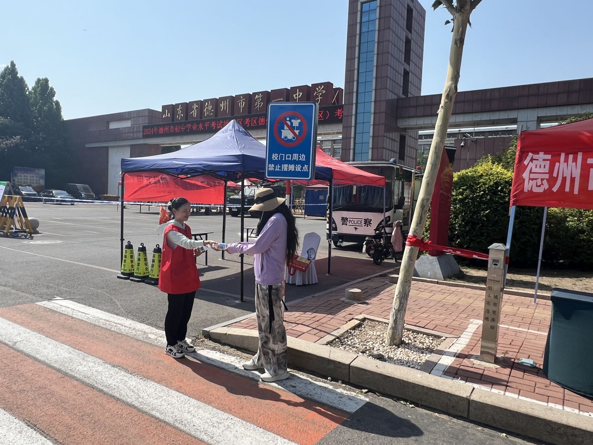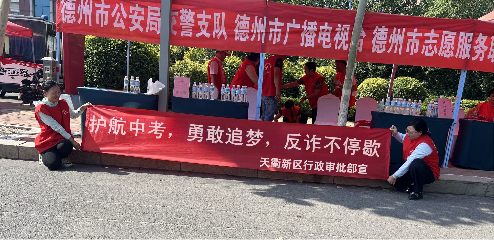 活动现场,为舒缓家长等待的焦虑情绪,反诈宣传员与德州市志愿者联合会志愿者为广大考生及家长免费发放矿泉水等防暑物品,同时,通过发放宣传资料,围绕中考期间和中考后易出现的“获取内部指标”“提前查分”等诈骗套路举案讲解,提醒广大考生家长不可轻信,也不轻易将考生信息告诉他人,谨防电信诈骗。遇到相关问题一定要冷静处理,及时向权威部门核实,做到不听谣、不信谣、不传谣、更不点击不明链接进行转账,避免上当受骗,给自己带来不必要的经济损失。