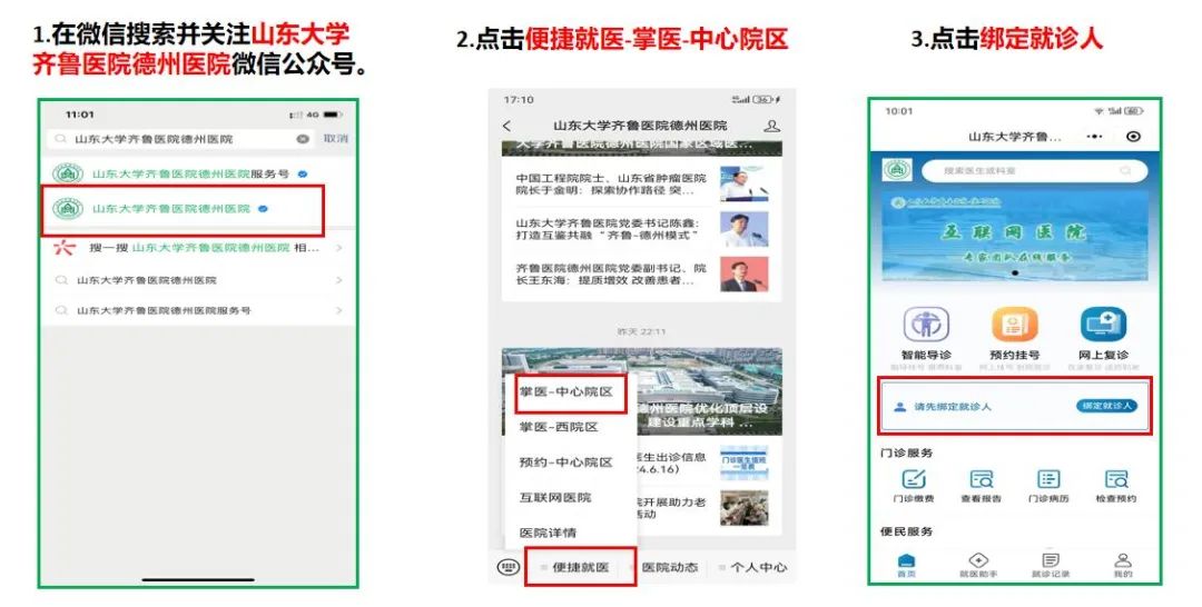 首次来中心院区就诊患者需要先建立档案,方法如下:
