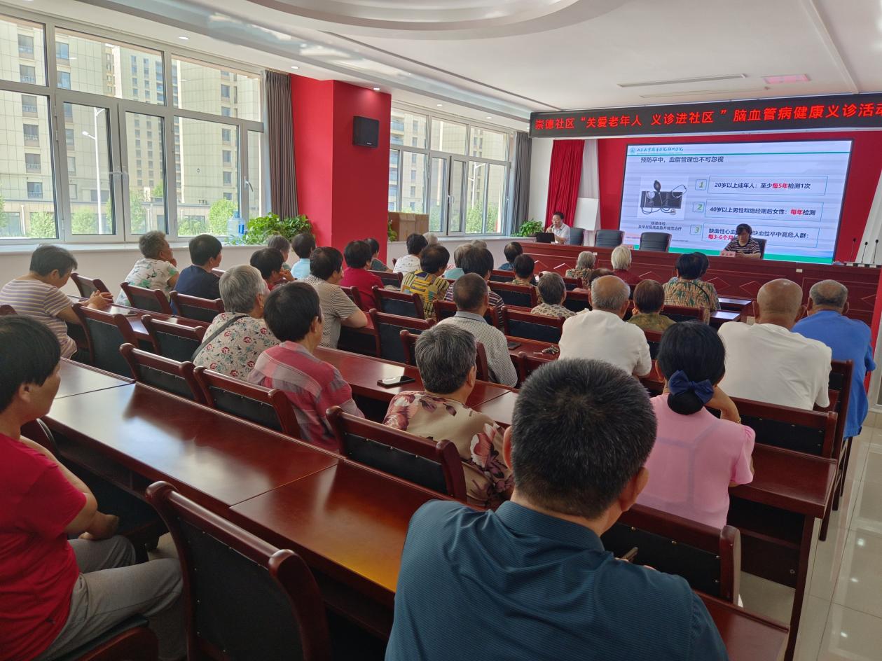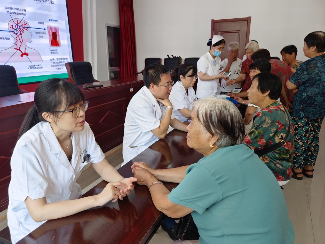 活动中,神经内科主任崔翔宇结合生活实例,用通俗易懂的语言分别从脑血管疾病的产生原因、常见症状及防治方法等进行了讲解,普及了脑血管疾病知识以及疾病给身体带来的危害,提醒居民要注意个人作息、做到常态化自我检测,倡导均衡饮食、适当锻炼、降低自身脑血管疾病发生的风险。讲座结束后,医务人员给现场的居民检测了血压、血糖,并现场解答了居民的疑问。