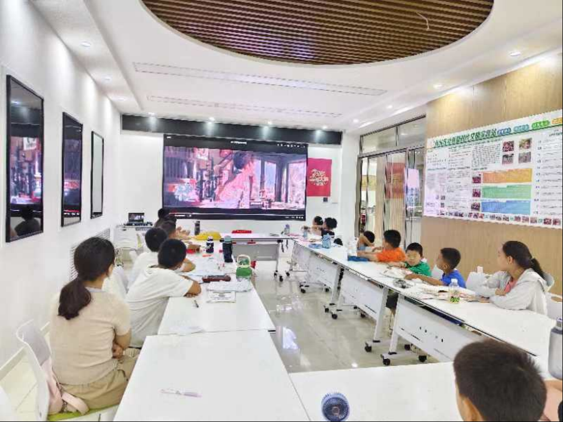 7月19日,德城区天衢街道肖何庄社区党群活动中心,十余名青少年在社区志愿者的组织下,观看电影《哈利波特》,在精彩的电影中度过充实而愉快的下午。