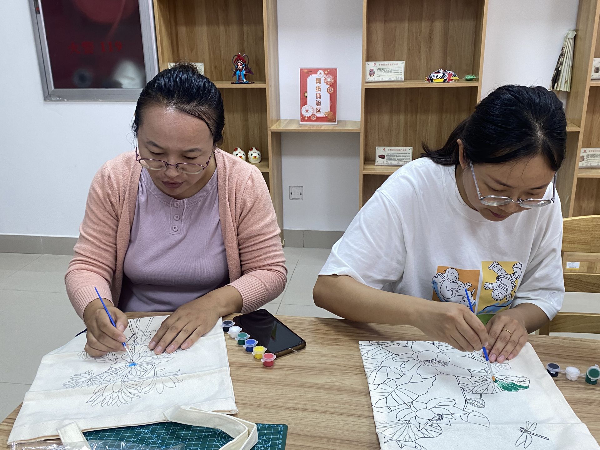 活动前,工作人员将色彩斑斓的颜料、画笔和洁白的帆布袋整齐地摆放在桌面上,等待着参与者们发挥创意。活动开始后,工作人员为大家详细讲解了帆布袋 DIY 的技巧和注意事项,从色彩搭配到绘画手法,在工作人员的指导下,大家纷纷拿起画笔,沉浸在创作的世界里,以各种美丽的花形图案表达内心的情感。经过一番努力,一个个独具特色、展现心灵手巧的帆布袋在大家手中诞生。大家相互欣赏着彼此的作品,交流创作心得,邻里之间的关系在这一刻变得更加紧密。