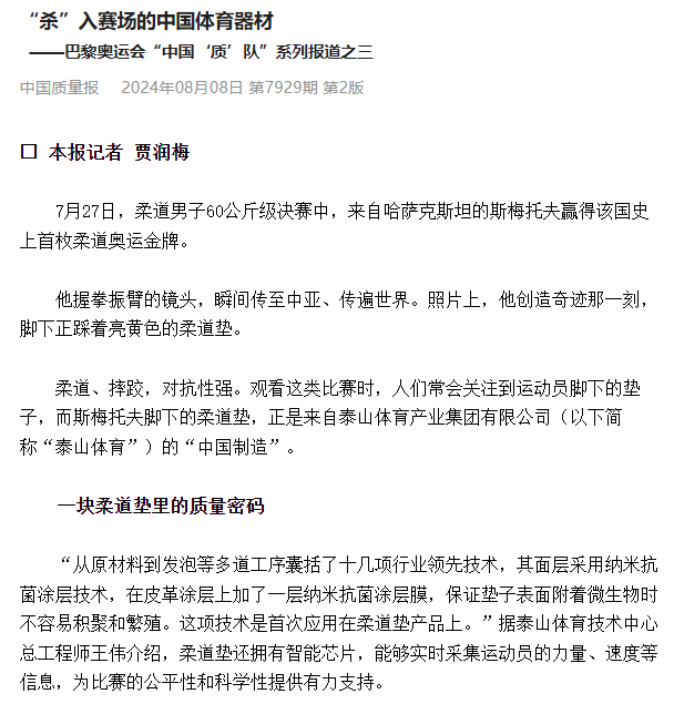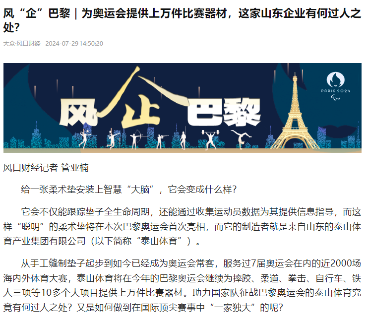 ▲新华社:泰山体育助力“中国智造”闪耀巴黎奥运会