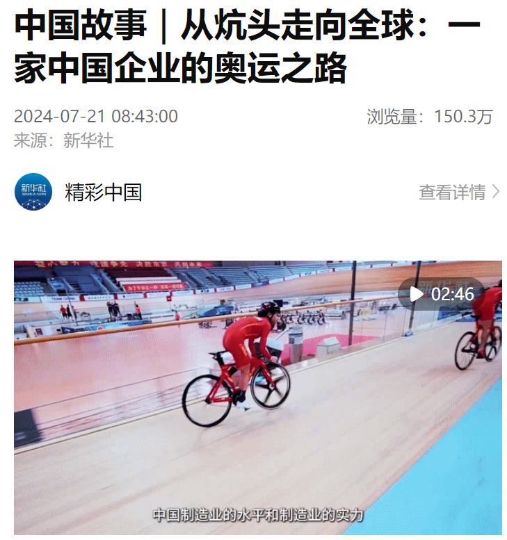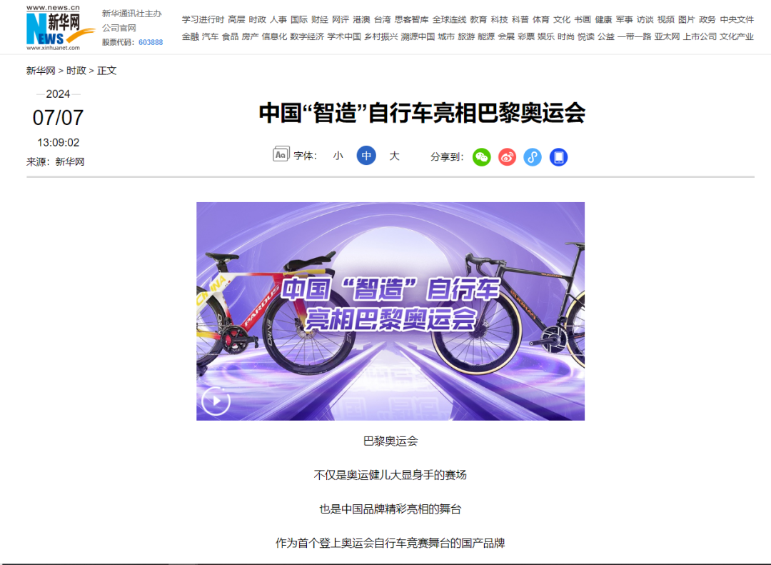 ▲新华网:中国“智造”自行车亮相巴黎奥运会