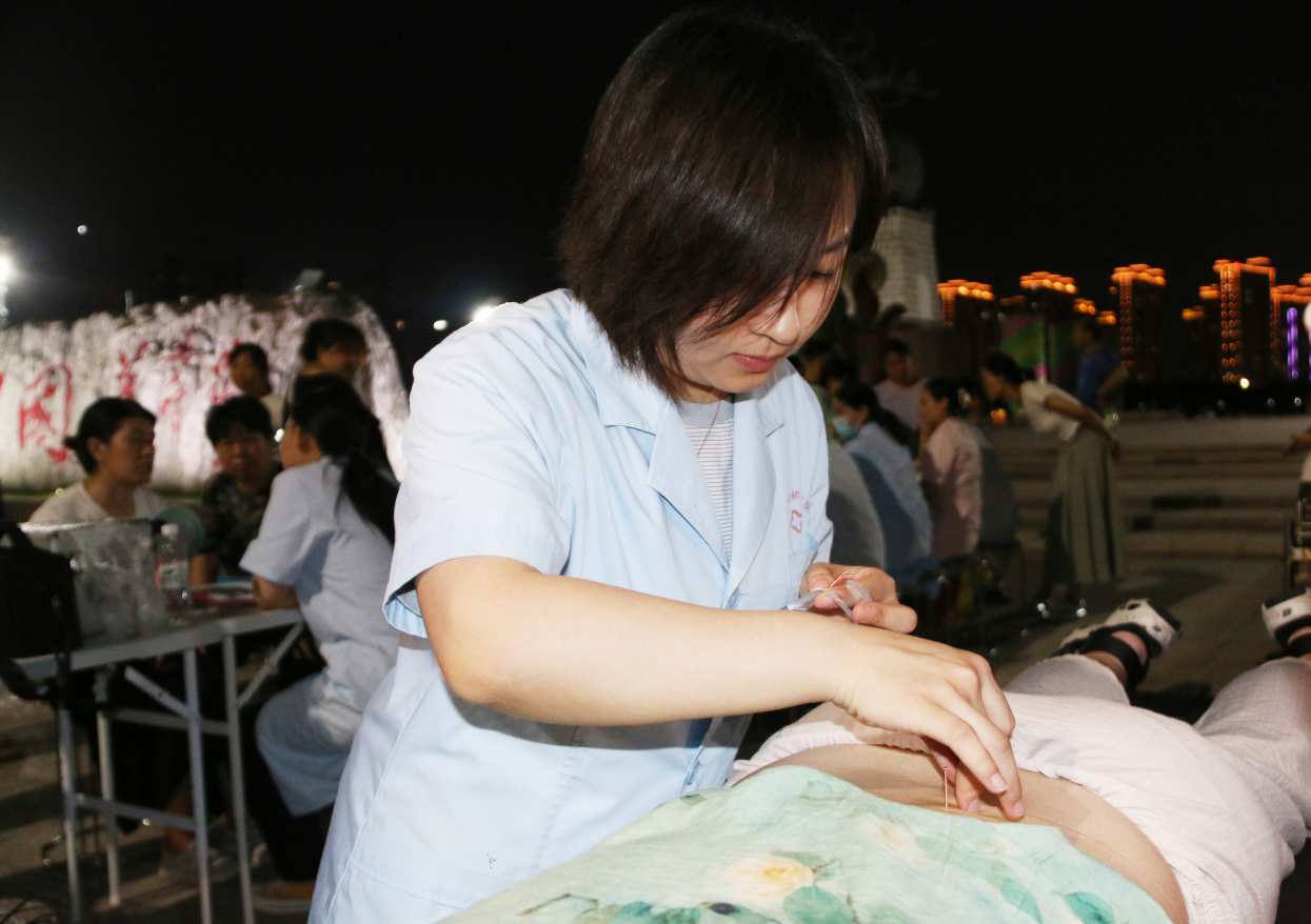不少市民在现场排队等待诊疗,市民张先生品尝了医院熬制的酸梅汤,“有一股中药味道,不那么甜,感觉比商店里买的好喝。”推拿、针灸、耳穴压豆、穴位贴敷……中医药适宜技术备受市民欢迎。“扎完针灸后,我的腰真得不疼了,轻松多了。”体验了针灸的孙女士赞不绝口,“晚上来遛弯,还能体验中医技术,这个活动真是太好了!”