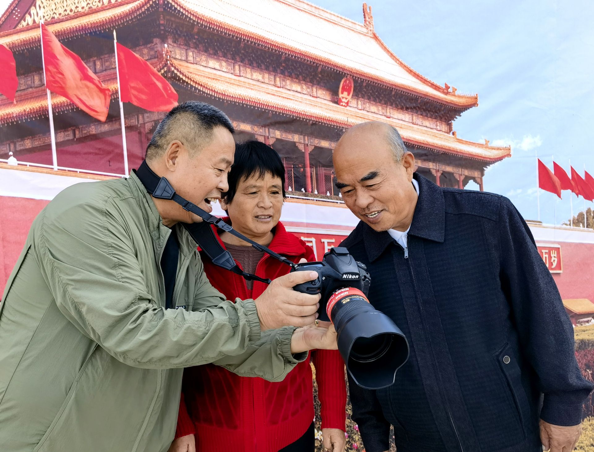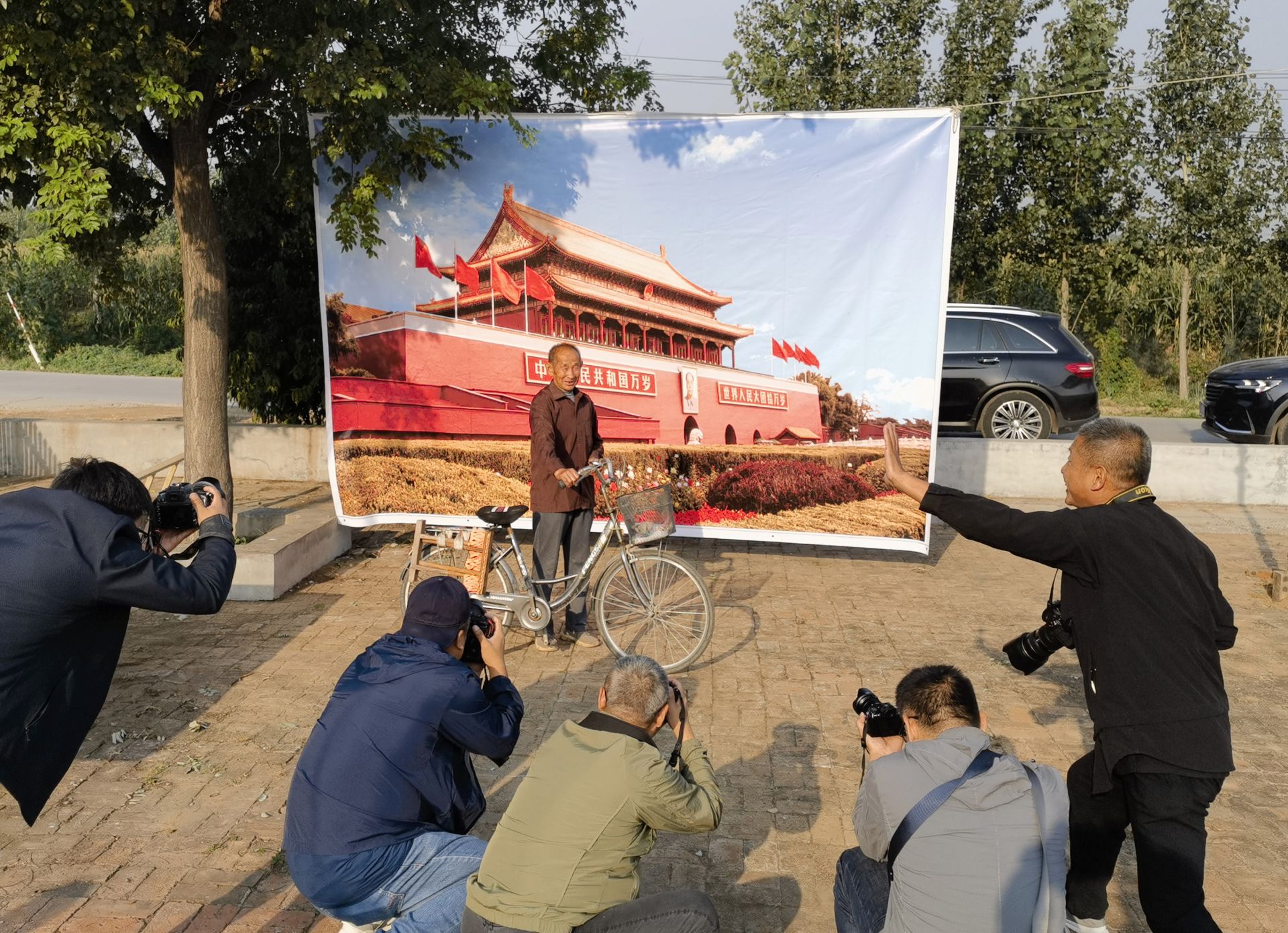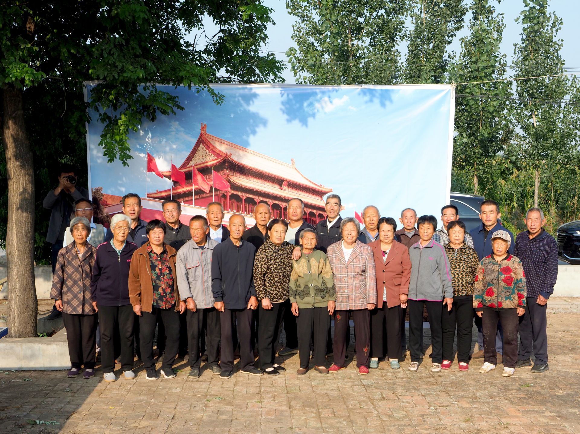 为实现留守老人足不出户,在家门口和天安门合影的心愿。德州市摄影家协会志愿者在活动开始前,找场地、挂幕布,先后到耿王村、九圣堂村、桥头孙村进行拍摄,为村中老人拍摄个人照和全家福,随着快门的“咔嚓”声,一张张笑脸被清晰定格。