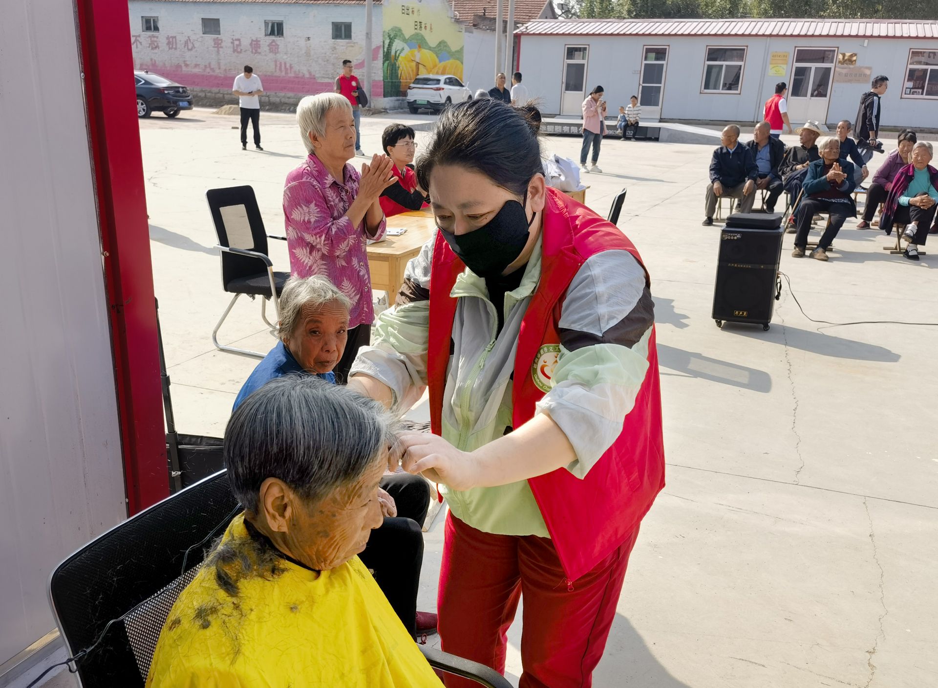 活动现场,德州市慈善义工联合会、德州城投地产公司志愿者们精心布置了理发区和义诊区,确保每一位前来的村民都能享受到舒适和贴心的服务。理发区,志愿者手拿理发工具,耐心询问老人们对理发的要求,最后老人的形象焕然一新,大家照着镜子露出了满意的笑容。