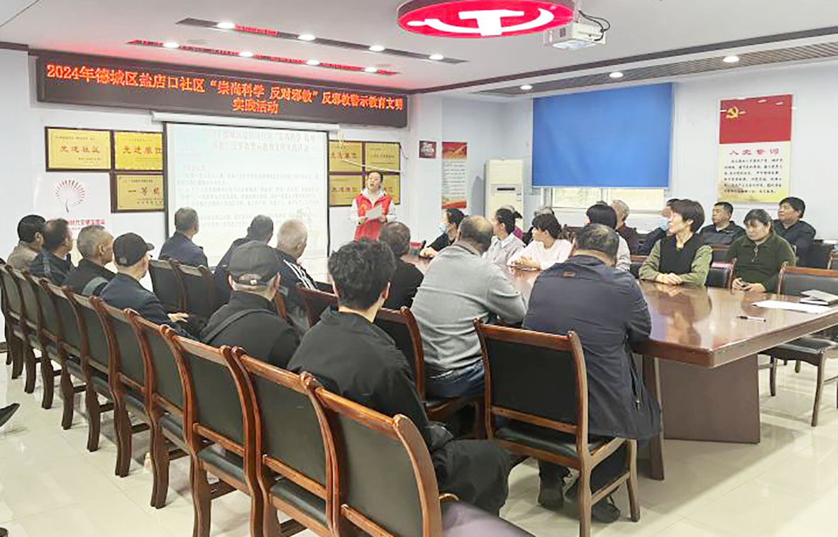 10月20日,德城区运河街道盐店口社区在新时代文明实践站开展“崇尚科学 反对邪教”反邪教宣传活动,进一步提高居民防范意识,营造积极向上、健康和谐的社会环境。