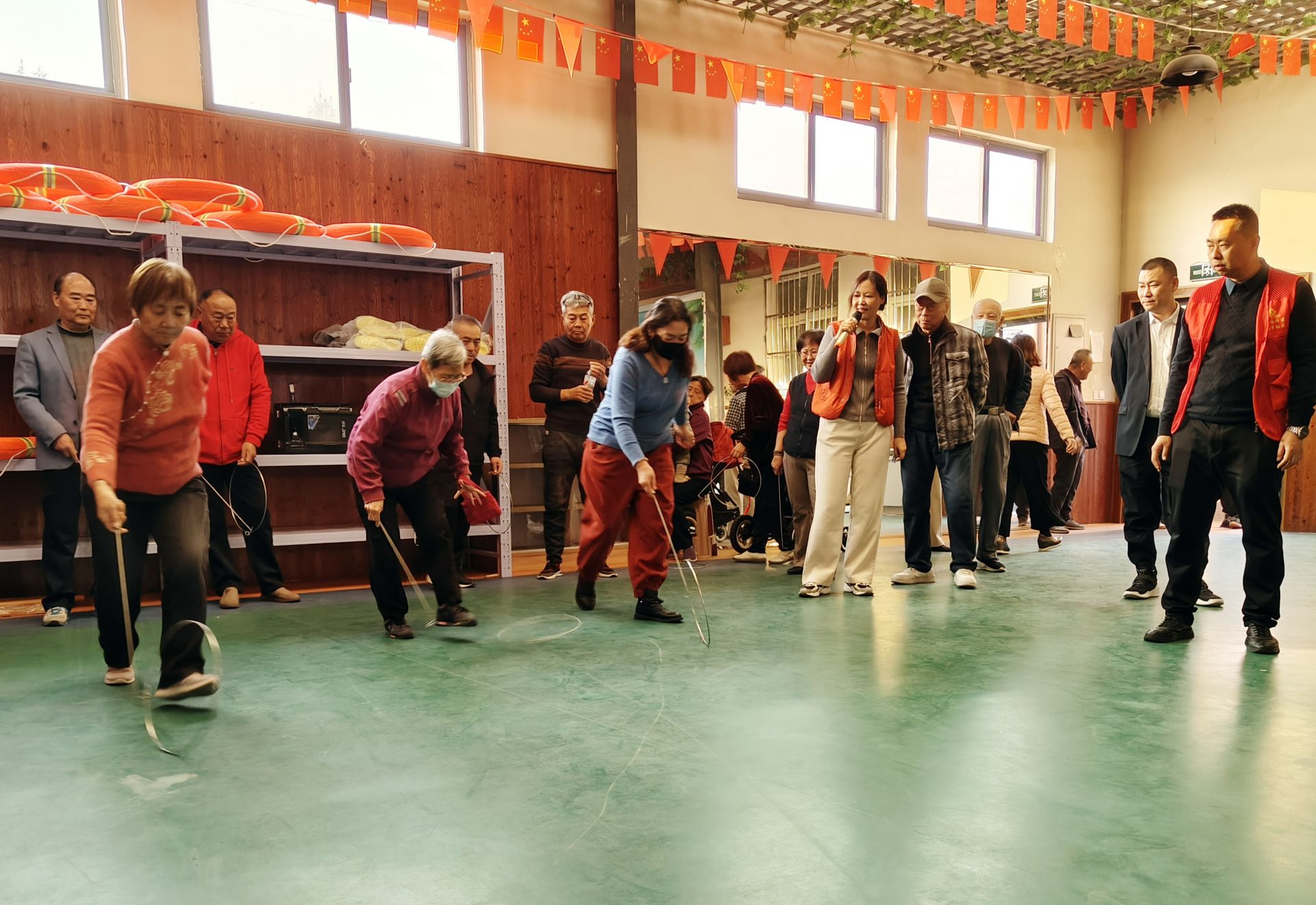 活动过程中,整个场地充满了欢声笑语。参与者在赛场上尽情释放自己的活力,享受着运动带来的快乐。一旁的观众也积极加油助威,欢呼声、喝彩声此起彼伏。大家齐动手、展智慧,奋力拼搏,乐享其中,呈现了饱满的“精气神”与“年轻态”。活动最后,社区工作人员为此次趣味运动会获奖居民颁发精美奖品。