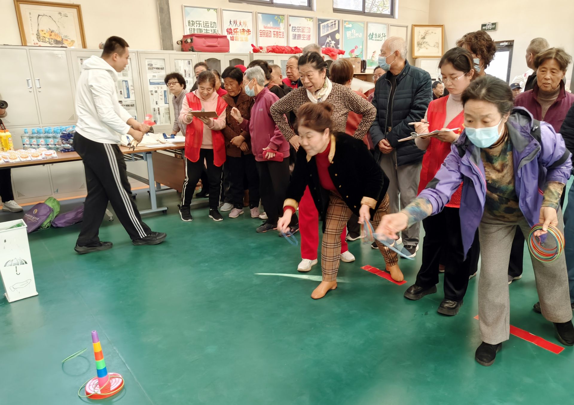 本次趣味运动会本着“安全简易、趣味活泼”的原则,结合居民的年龄和身体状况“量身定制”,设置了“一圈到底”“乒乓球大作战”“齐心协作”“回到童年”等8个趣味竞技项目。